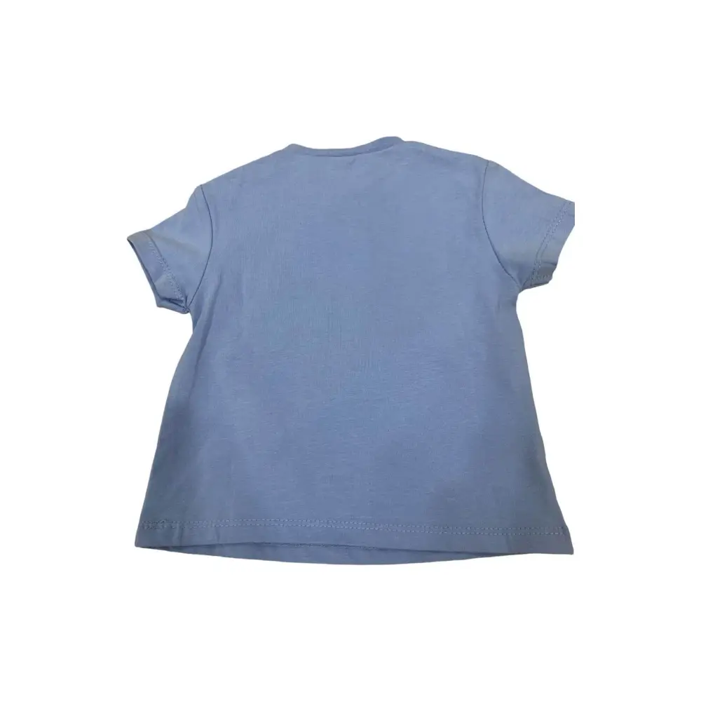 La maglietta a manica corta presenta un comodo girocollo e una pratica chiusura con bottoni a pressione sulla spalla, pensata per vestire il tuo bambino con facilitร . L’allegro design stampato aggiunge un tocco di stile.
