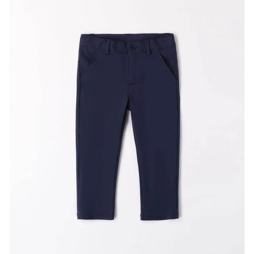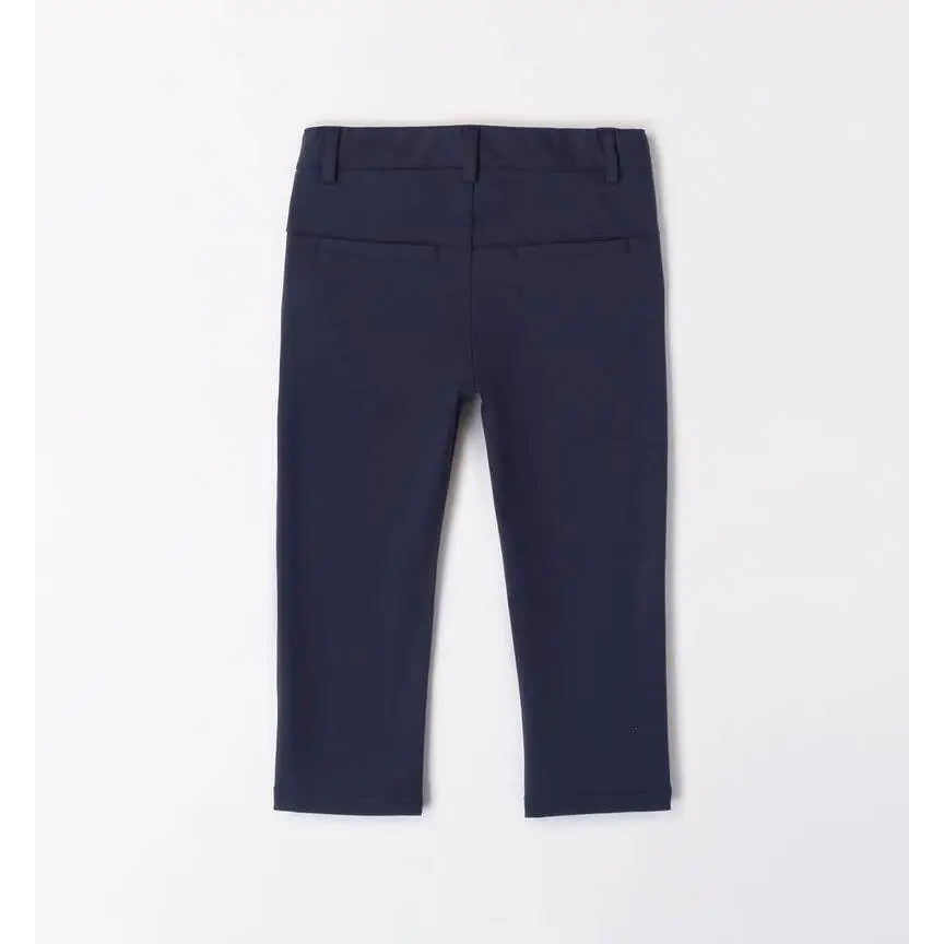 I pantaloni per bambino Sarabanda, realizzati in punto milano stretch, completano il completo elegante 3pz. Il modello slim fit in fantasia tinta unita presenta una gamba dritta con piega frontale, tasche chino e chiusura con zip e bottone. La vita regolabile con elastico interno garantisce una vestibilità confortevole e adattabile. Perfetti per le cerimonie, questi pantaloni fanno parte della collezione S Premium Sarabanda.