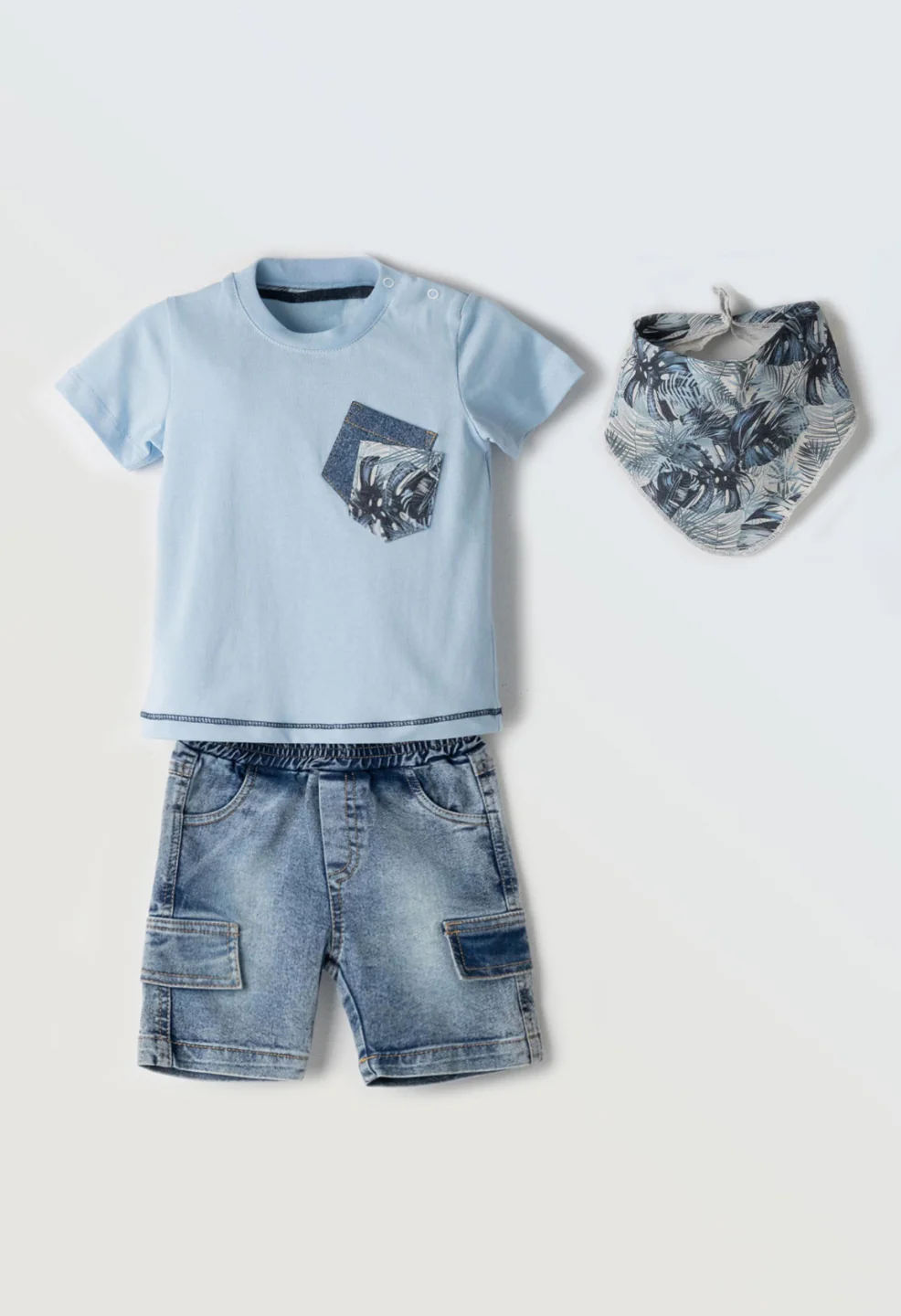 Completo maglietta, pantaloncino e bandana baby maschio