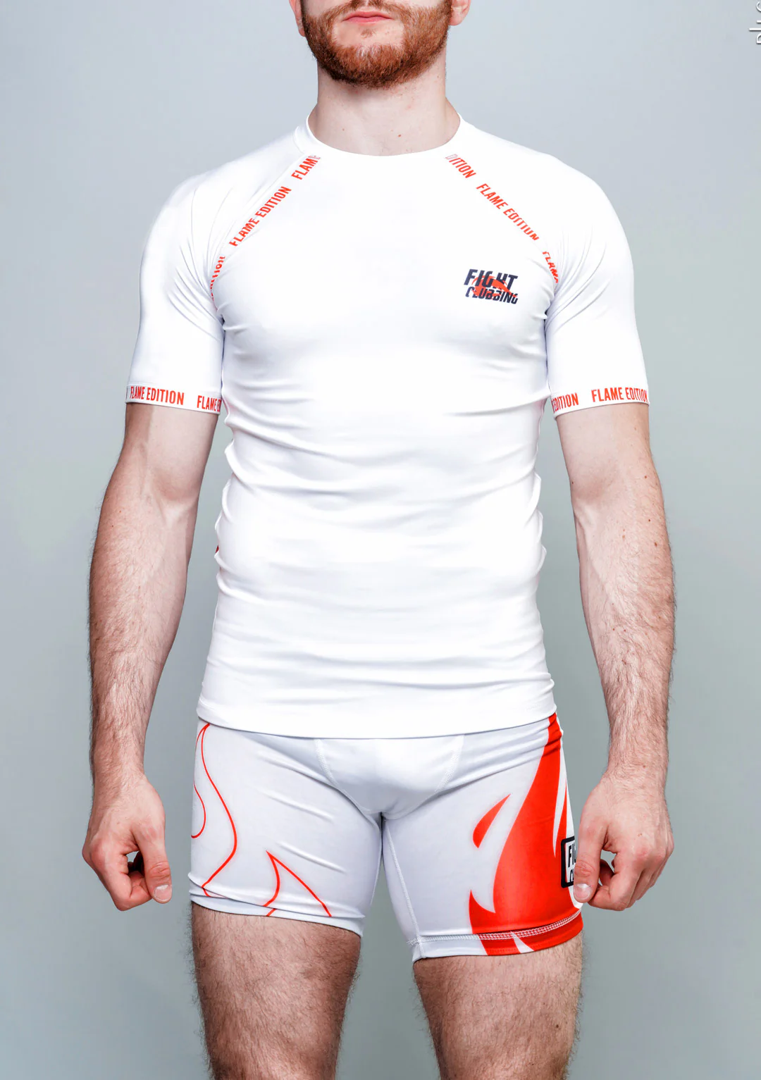 Il Completo MMA Flame Edition รจ realizzato in poliestere e spandex e garantisce leggerezza, resistenza e totale libertร di movimento. Progettata per offrire la massima comoditร , con il suo taglio aderente consente di ottimizzare la circolazione sanguigna e tempi di recupero piรน rapidi, fornendo un perfetto controllo della traspirazione del sudore. Ideale per allenamenti e competizioni di MMA, Grappling, Cross Training e Fitness. Vestibilitร Aderente (si raccomanda di consultare attentamente la guida alle taglie), con stampa sublimatica per la massima durabilitร .