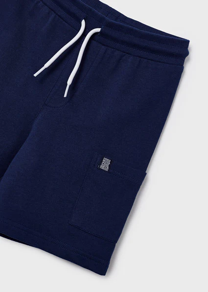 Capo ECOFRIENDS contiene cotone organico. Pantalone corto modello bermuda per bambino. Vita elasticizzata con cordoncino regolabile. Tasche laterali.