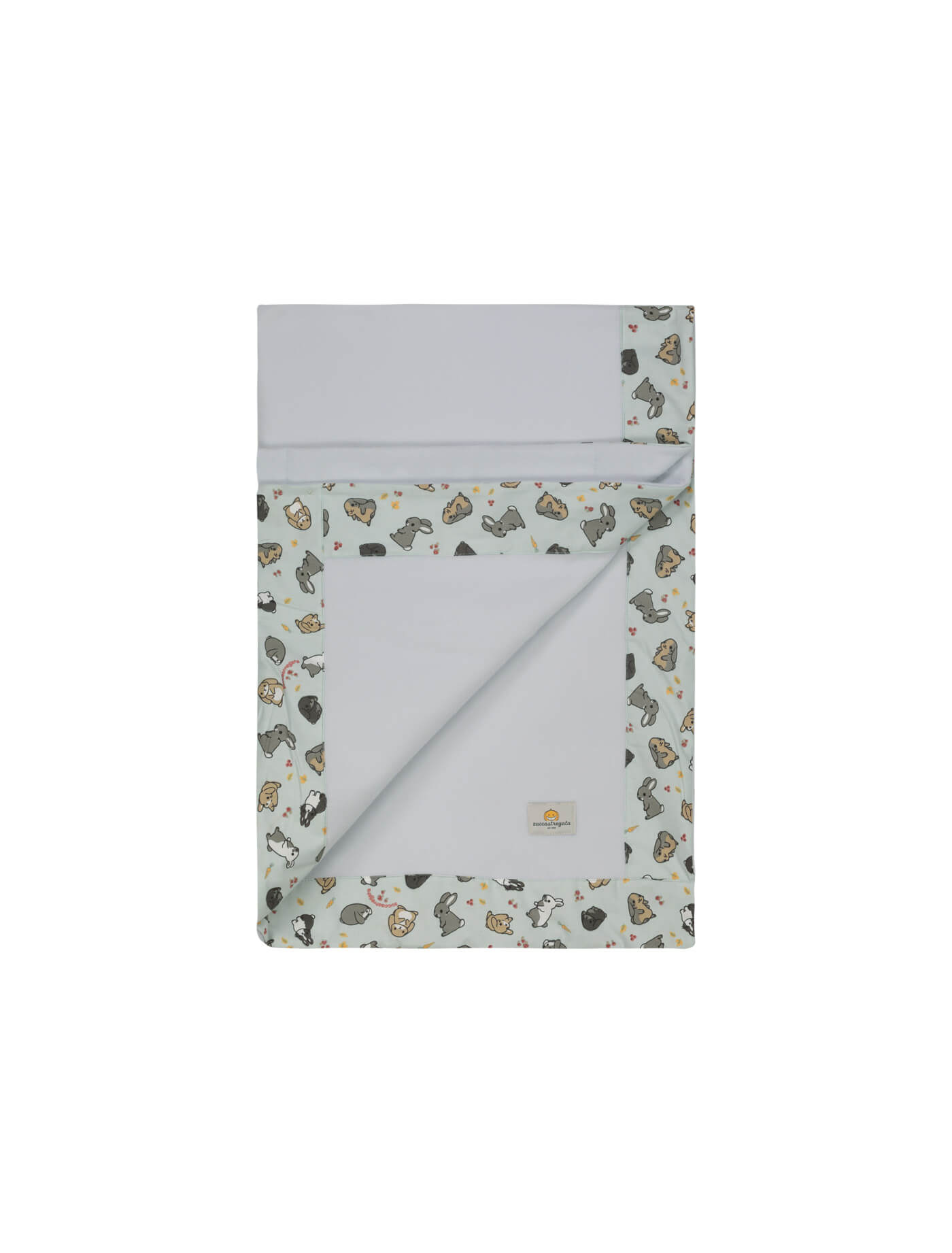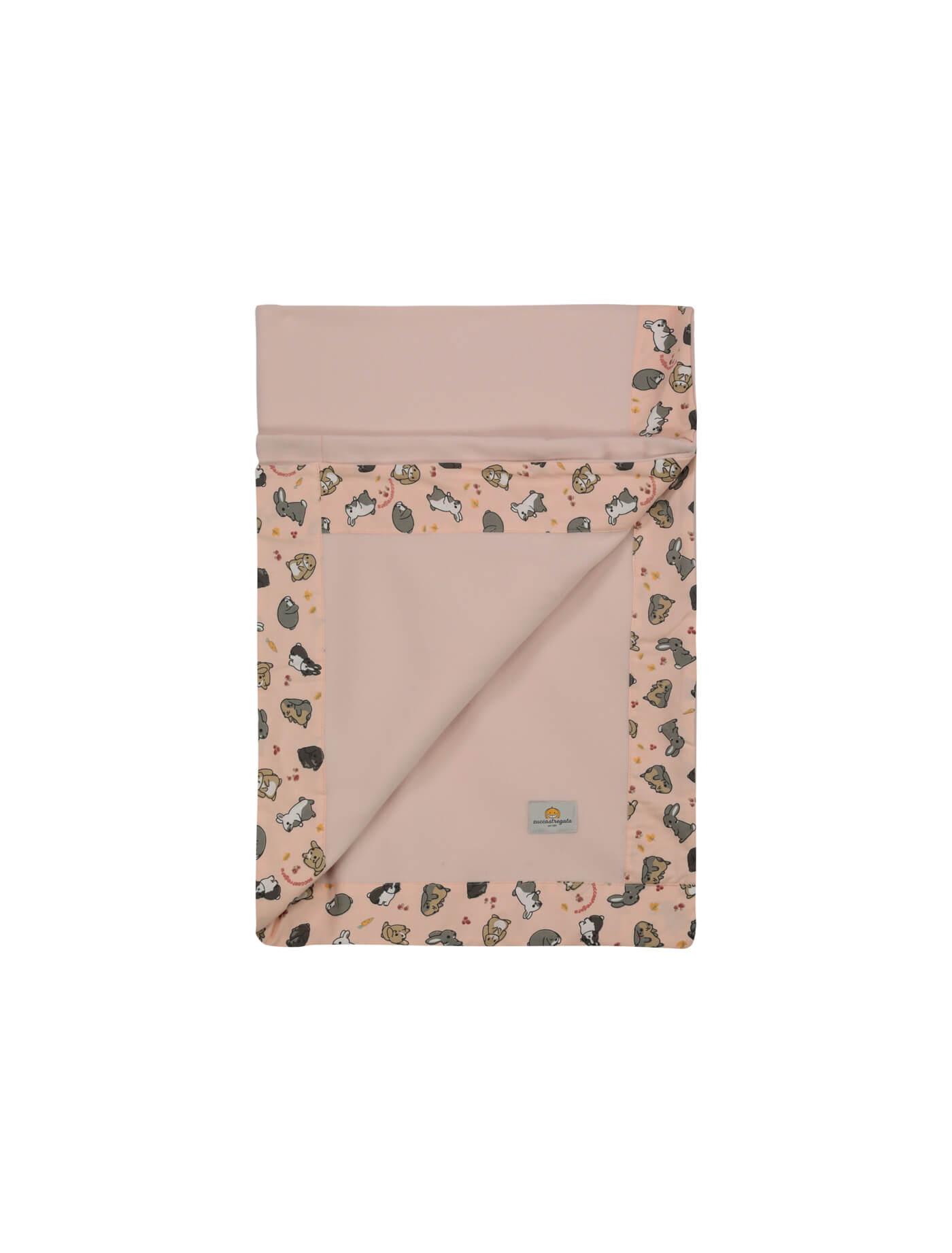 Coperta bambino per lettino, box o passeggino. Realizzata in morbido e caldo pile, rifinita con bordo in divertenti fantasie di cotone.