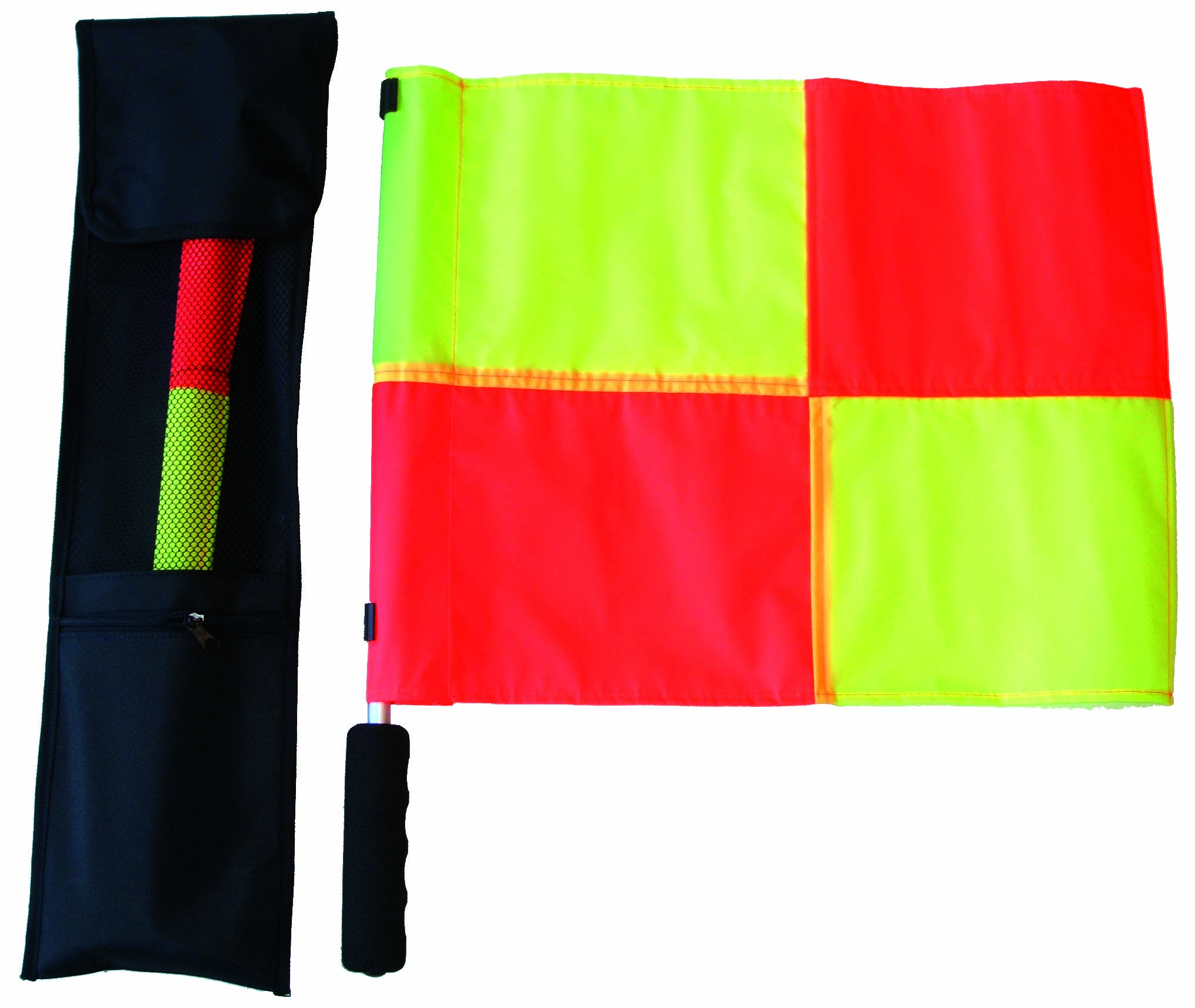 Coppia di bandierine segnalinee a scacchi fluorescenti con aste in alluminio e custodia
