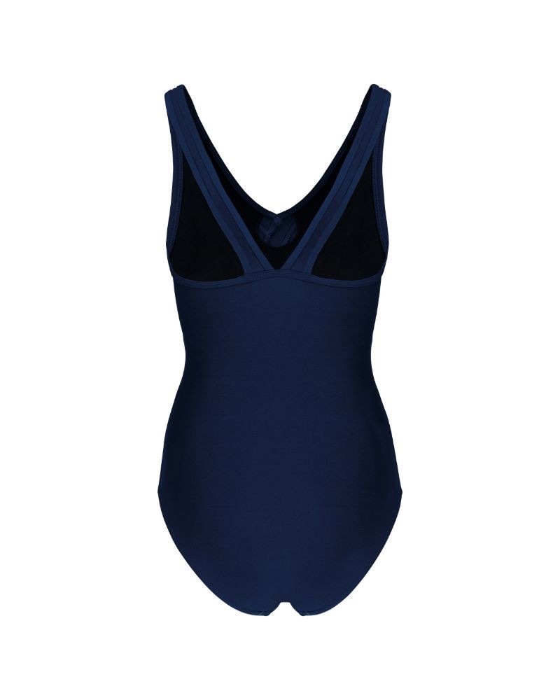 Stretch e traspirante per un comfort ottimale Elevata resistenza al cloro e protezione UV 50+ Foderato sul davanti per una migliore coprenza 100% poliestere di cui il 43% politereftalato di butilene. Resistente al cloro. Protezione UV 50+. Scollatura sul davanti a V. Spalline ampie per un migliore sostegno con finiture a sbieco e doppia impuntura. Inserto sul davanti incrociato con piccole pince per valorizzare il seno. Sbieco decorativo su inserto sul davanti. Finitura doppia impuntura sull’apertura delle gambe. Scollatura sulla schiena poco profonda. Inserto sul davanti e a fondo capo foderati.