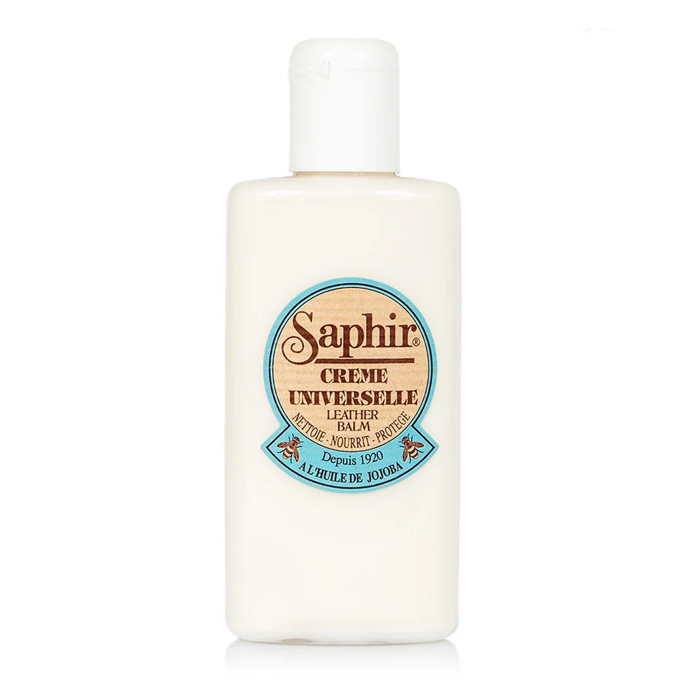 Latte detergente neutro per pulire e rinnovare scarpe stivali e accessori in pelle di tutti i colori. Saphir Creme Universelle a base di cera d’api pulisce e nutre la pelle in modo da evitare spaccature mantenendo la stessa sempre morbida e liscia. Confezione da 150ml