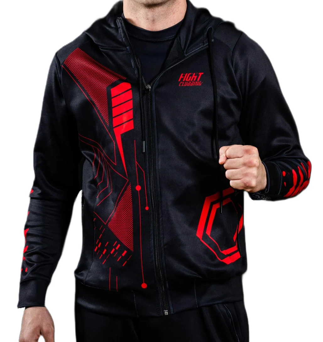 La Felpa Tech con Zip e Cappuccio รจ uno dei prodotti di punta della collezione, indossata dagli atleti Fight Clubbing durante gli eventi. Il design audace con grafiche sublimatiche personalizzabili richiama lโ€™esperienza adrenalinica dellโ€™ingresso sul ring. Cappuccio foderato con coulisse regolabile e chiusura a zip intera. Due tasche con zip e zip regolabili sulle maniche. Vestibilitร  regular.