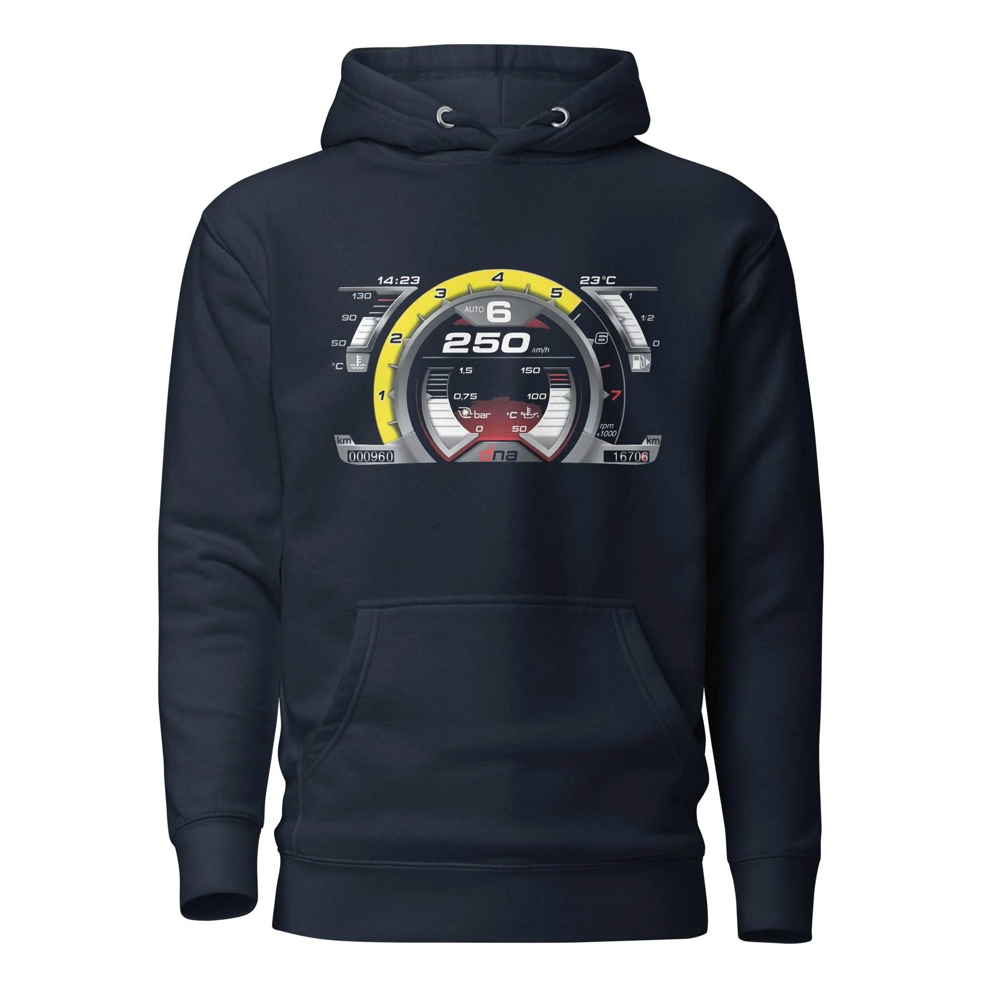 Felpa con cappuccio dedicata ai fan dell’Alfa Romeo 4C con stampa del cruscotto – Stile unico e passionale