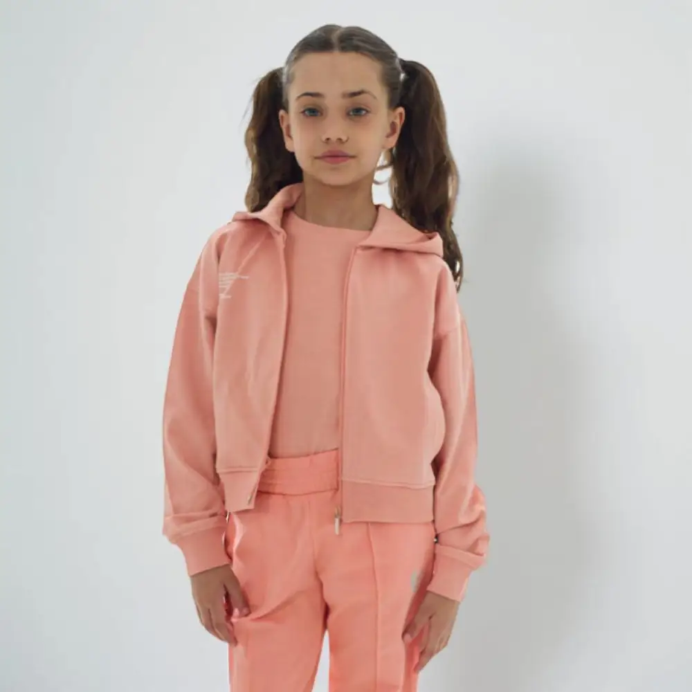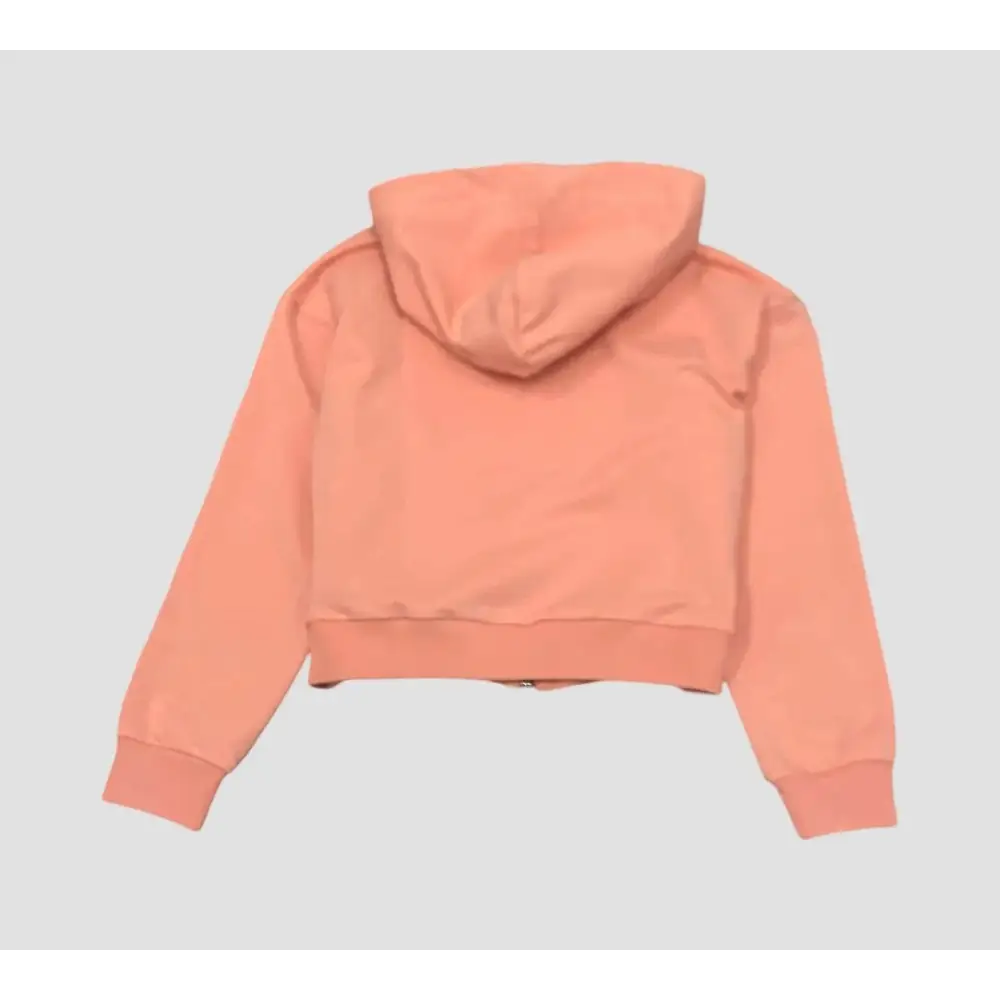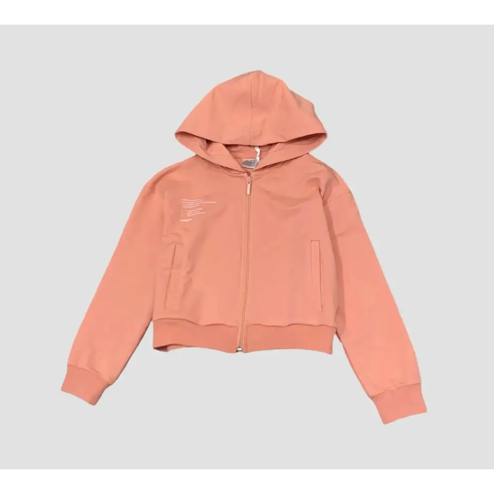 Felpa corta, aperta color pesca in cotone, con cappuccio.