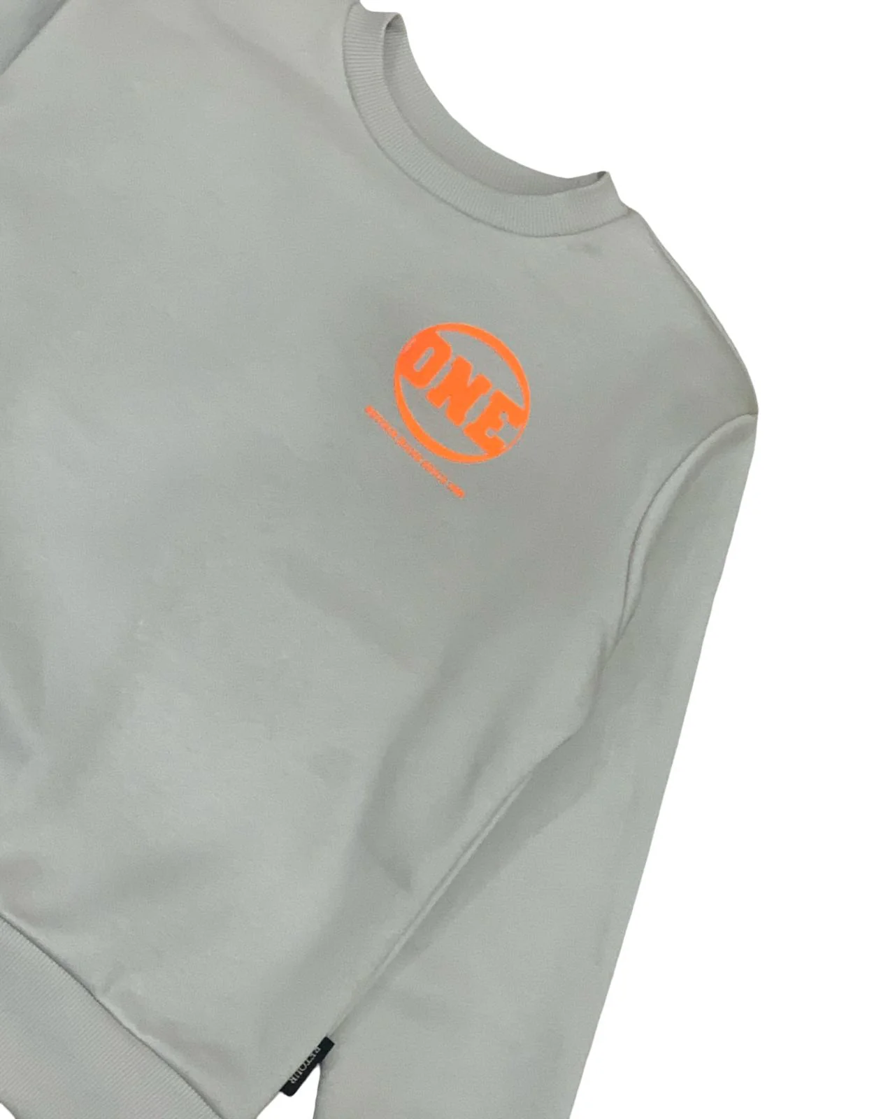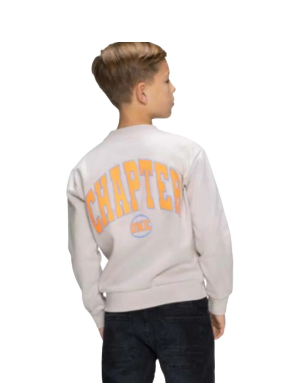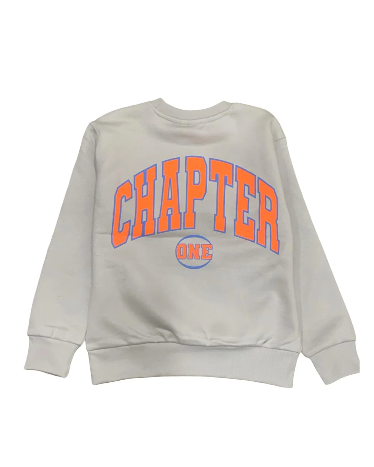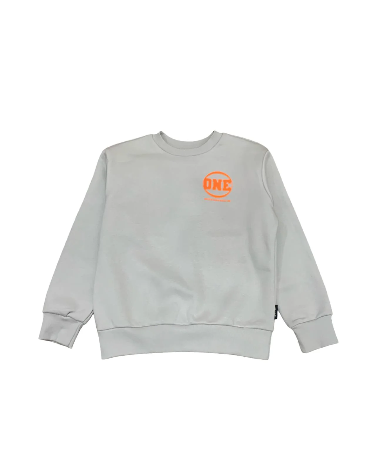 Felpa Girocollo Ragazzo Fino a 16 Anni – Colore Ghiaccio con Stampa Arancione Flu
