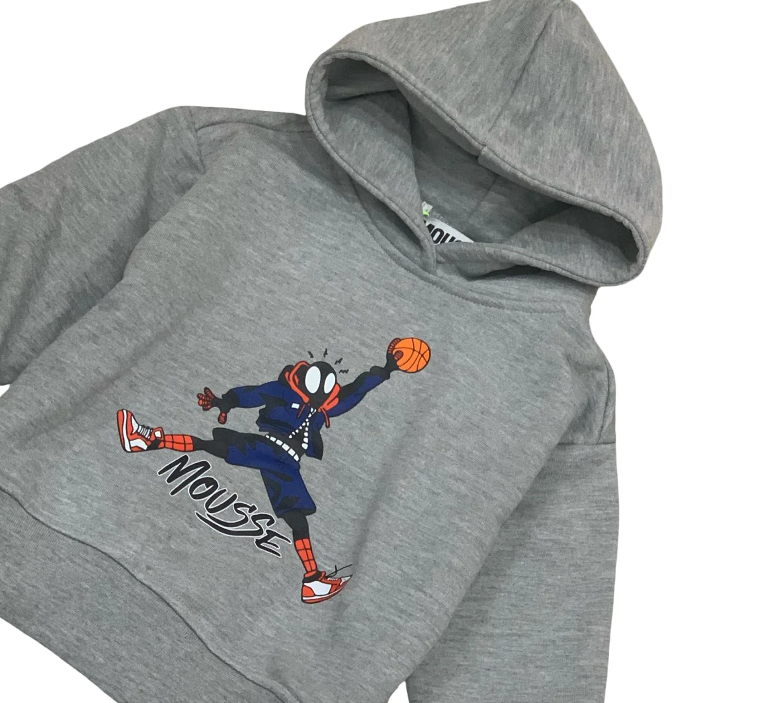 Il taglio è comodo, senza zip, con cappuccio integrato per proteggere dal vento e dal freddo. Si abbina perfettamente ai pantaloni e alle magliette della collezione Mousse per un look urban e sportivo.