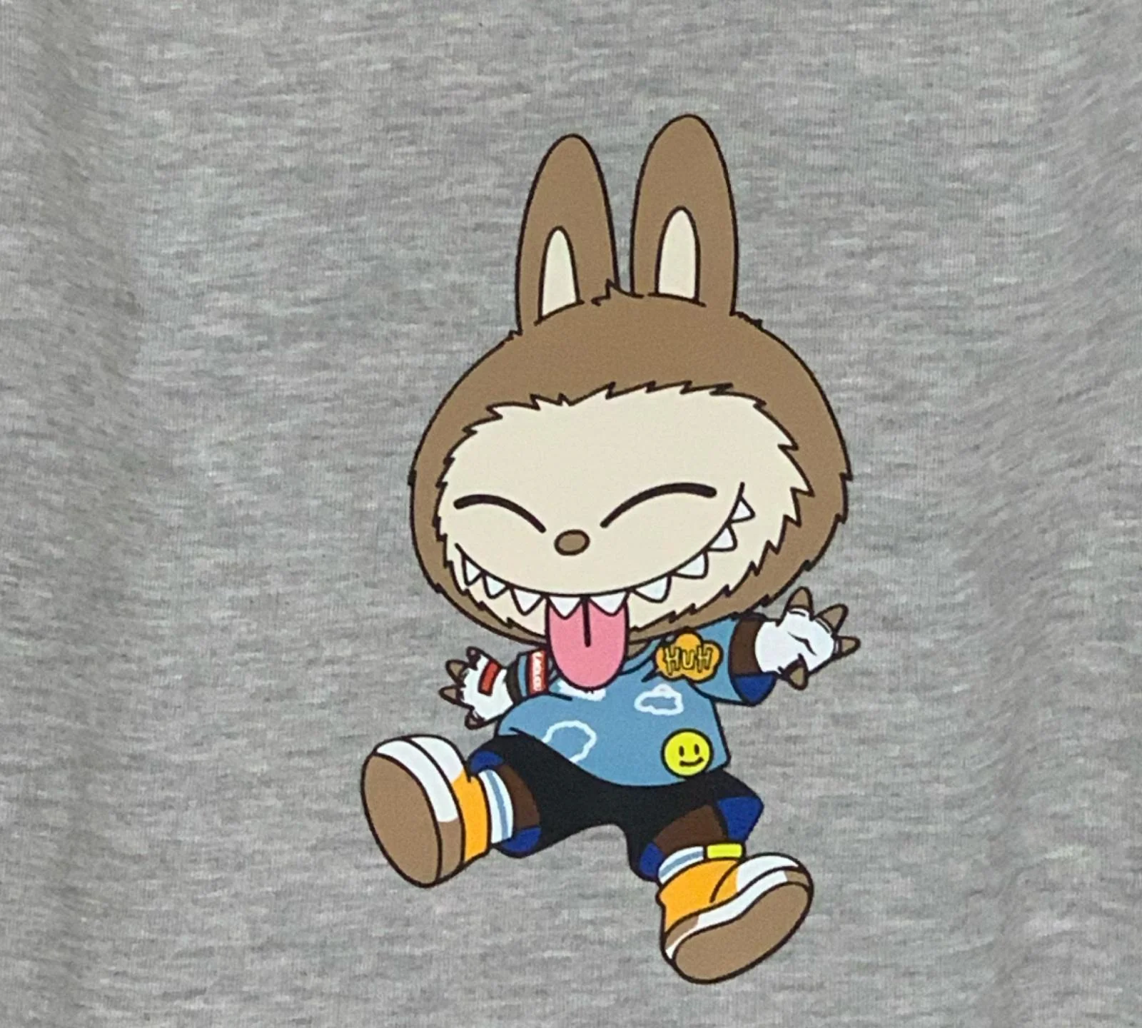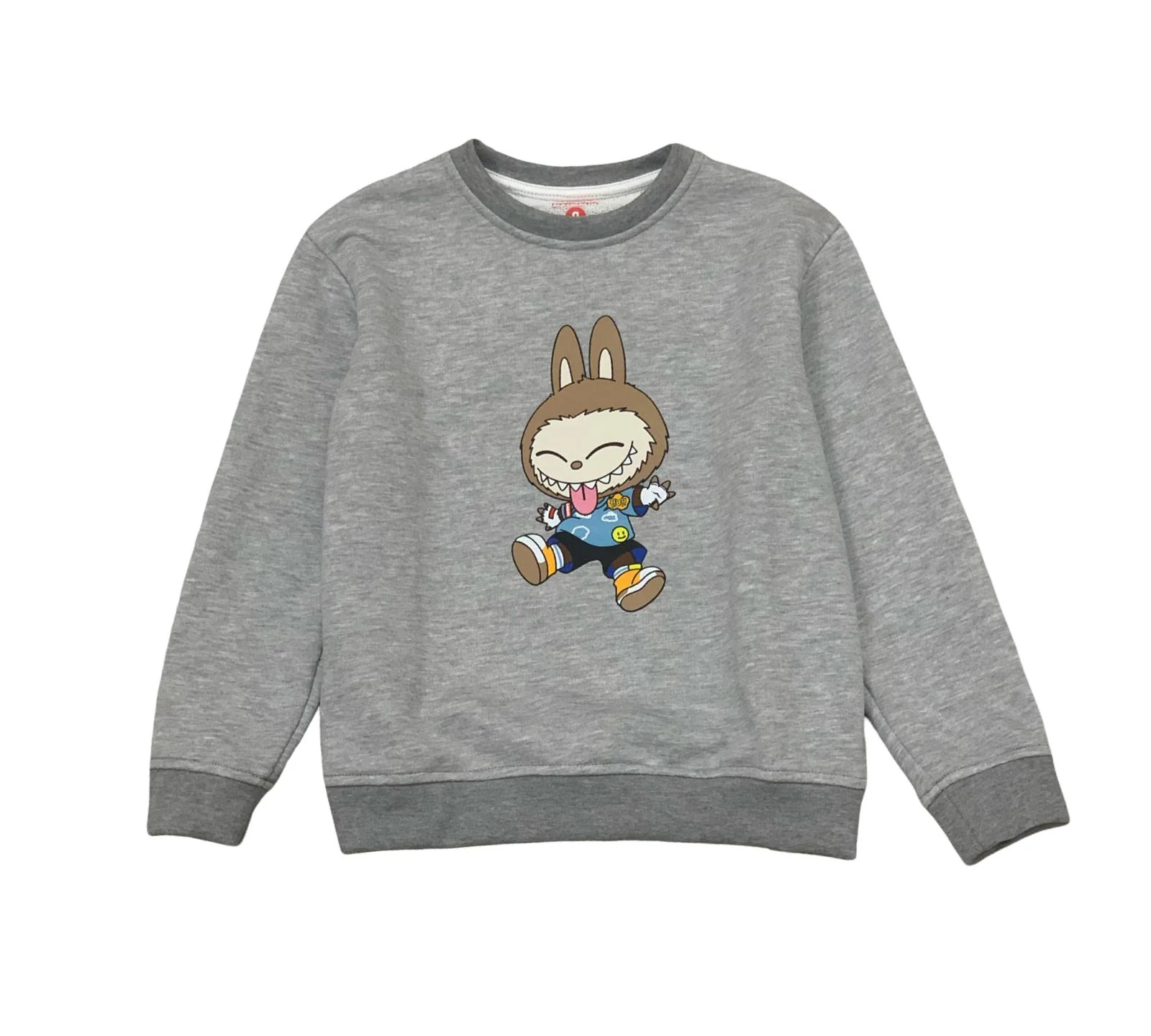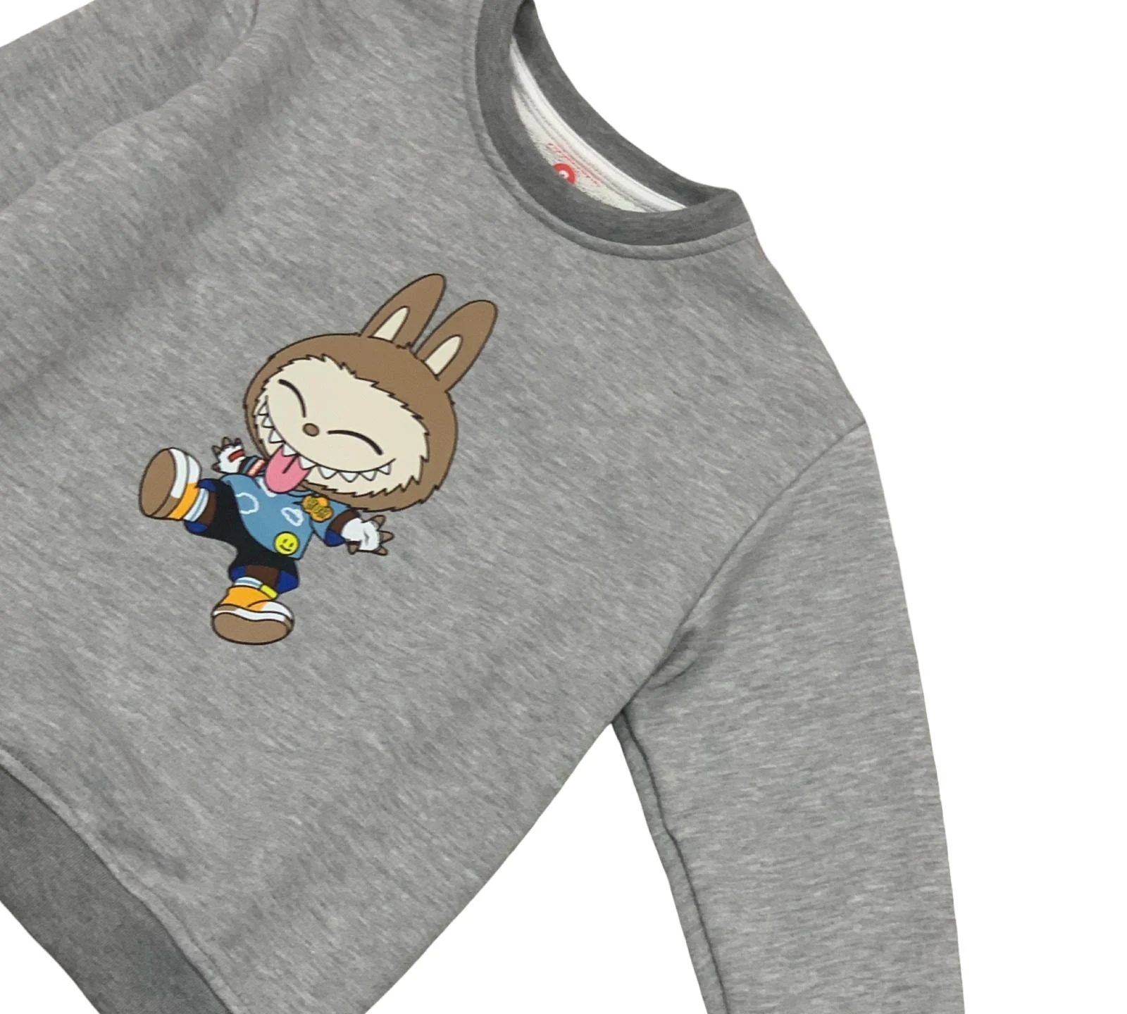 Felpa Grigia Unisex con Stampa Coniglietto che Gioca