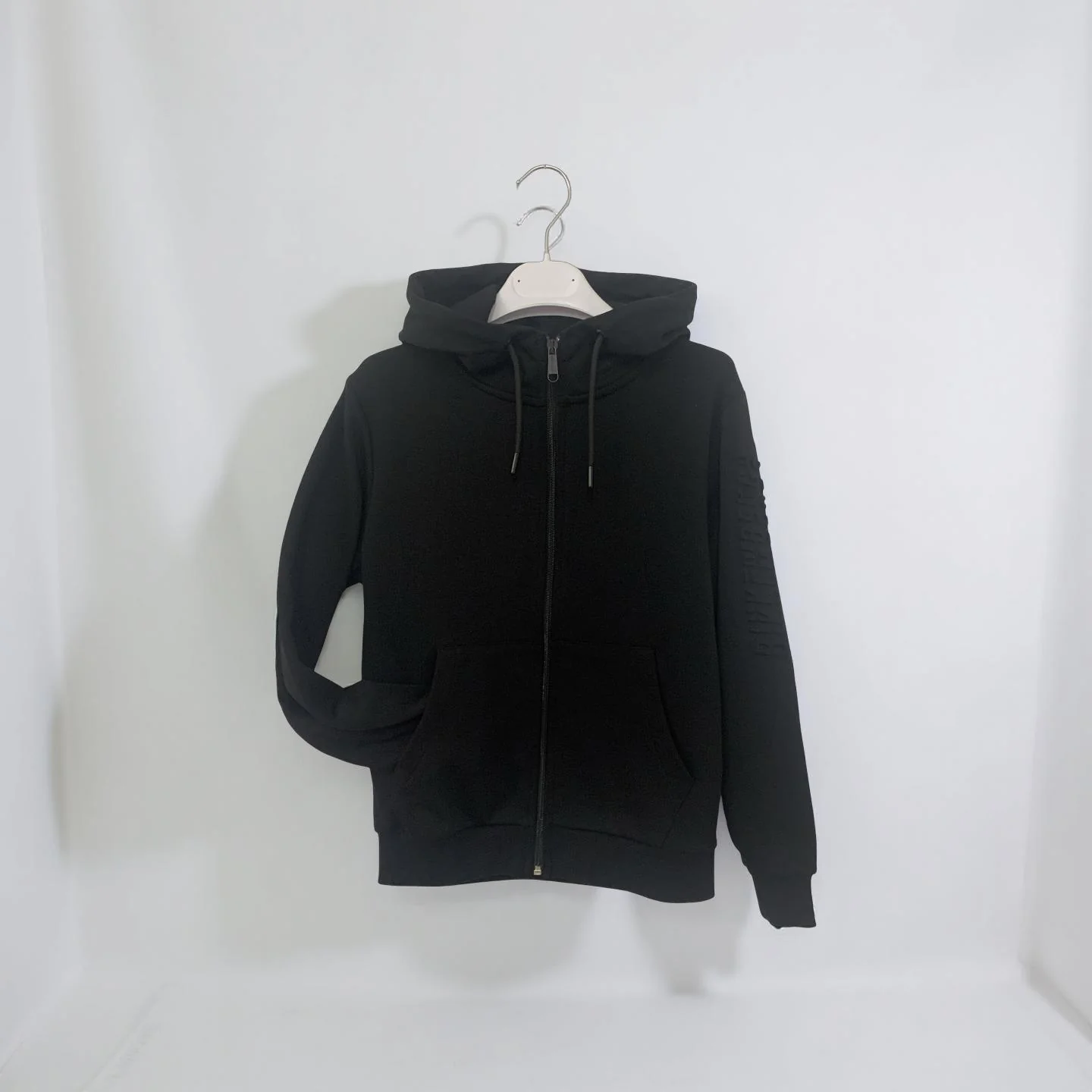 Felpa Nera con Cerniera e Cappuccio da Ragazzo – Logo Embossed sulla Manica
