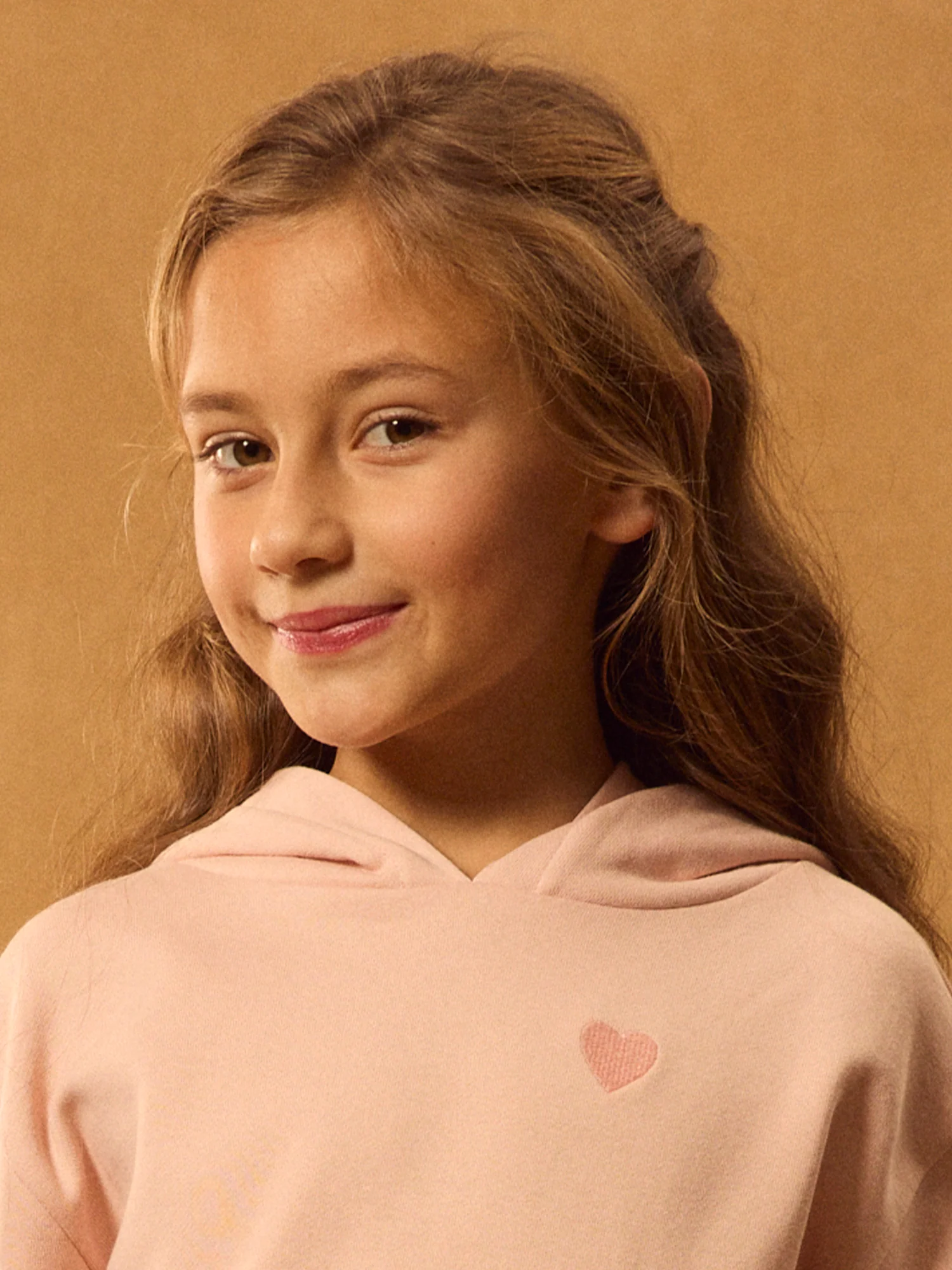 Adatto a bambine dolci e giocose in primavera. Il pile offre calore leggero. Il ricamo a cuore e l’interno floreale aggiungono uno stile tenero. Tasca a canguro Ricamo a cuore sul petto Interno floreale del cappuccio Questo prodotto appartiene alla Collezione Essenziali: Mix Major.