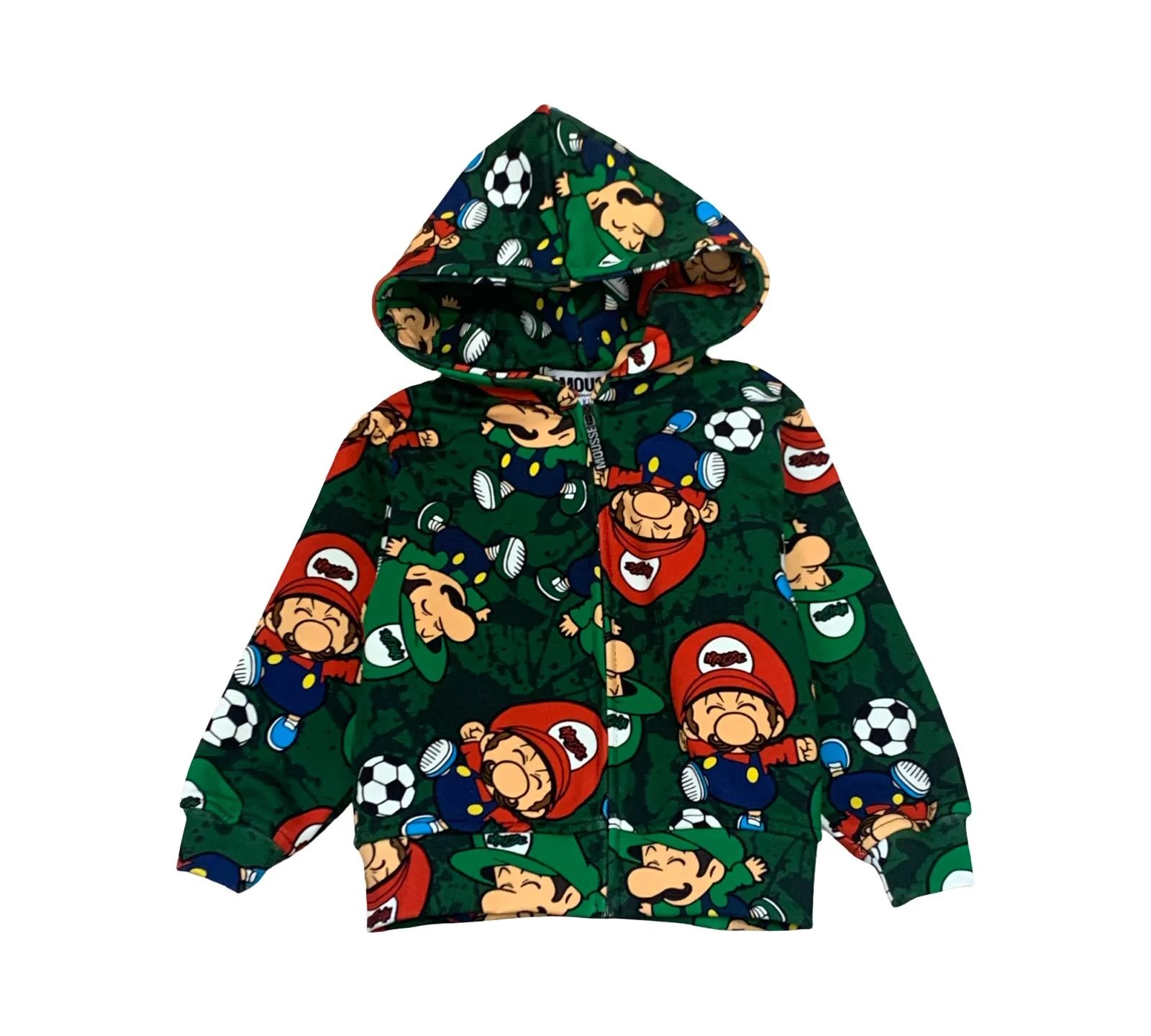 Rendi le giornate dei più piccoli ancora più allegre con questa felpa verde con stampa buffa e colorata! Realizzata in morbido cotone, è perfetta per accompagnare i bambini in ogni avventura, sia a scuola che nel tempo libero. Il cappuccio comodo e la pratica cerniera rendono questa felpa facile da indossare e super confortevole.