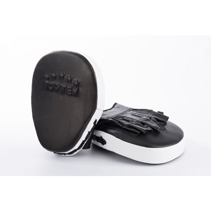 Velocità e potenza sono i punti di forza dei focus mitt TOP TEN “Vintage”. Questi eleganti colpitori, realizzati in vera pelle marrone/bianca, non convincono solo dal punto di vista estetico — grazie al vistoso logo TOP TEN in rilievo sulla superficie di impatto — ma anche per la loro funzionalità professionale.Con un peso di soli 220 g ciascuno, possono essere guidati in modo dinamico grazie alle impugnature anatomiche. I canali di ventilazione integrati garantiscono una corretta aerazione e rendono i “Vintage” particolarmente durevoli nel tempo. I focus mitt TOP TEN devono la loro vestibilità ottimale alla leggera curvatura, studiata per…