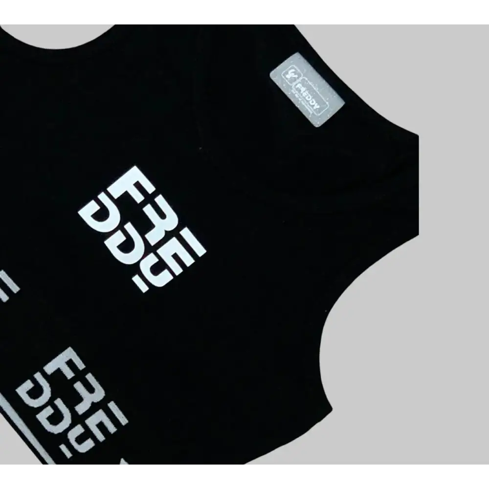 Il top corto sportivo bambina presenta un’ampia fascia elastica sotto il busto. Questa soluzione garantisce una vestibilità sicura durante lo sport. Il logo Freddy stampato dona un tocco moderno, seguendo le ultime tendenze kidswear. L’assenza di maniche assicura piena libertà di movimento.