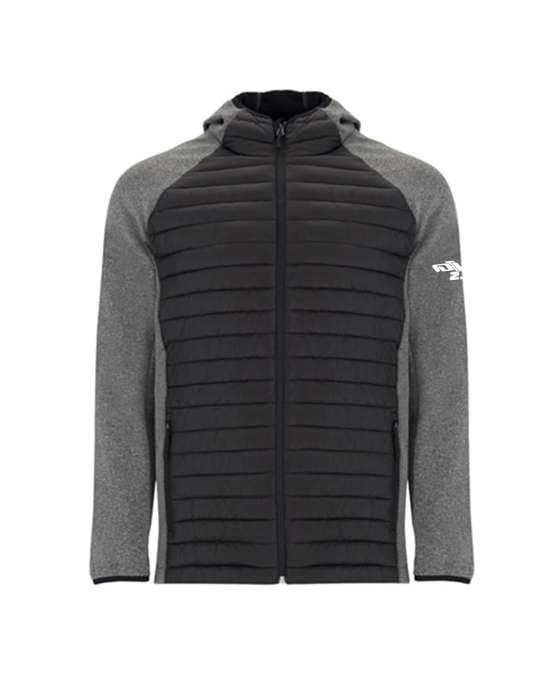 Giacca Minsk uomo DVM – Manica stile ranglan, Tessuto softshell nelle maniche. Imbottito, tatto piuma nella parte frontale e nella schiena. Due tasche frontali con cerniera. Bordatura elastica sul collo, polsini e girovita.