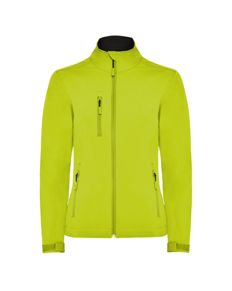 Softshell Nebraska Roly a doppio strato, modello sfiancato donna. Cerniera invertita a tono, con protezione mento e tiretto. Rivestimento in pile. Resistente all´acqua. A prova di vento – Duo concept.