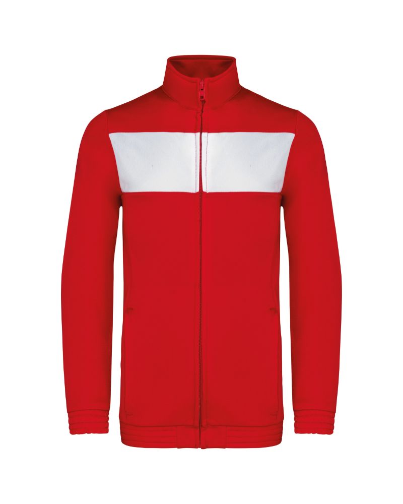 100% poliestere lavorato a maglia: ultra resistente 2 tasche laterali con zip Taglio aderente e moderno 100% poliestere lavorato a maglia. Chiusura con zip. Inserto sul petto a contrasto. 2 tasche laterali con zip. Fondo manica e fondo capo elastici. Taglio aderente e moderno.