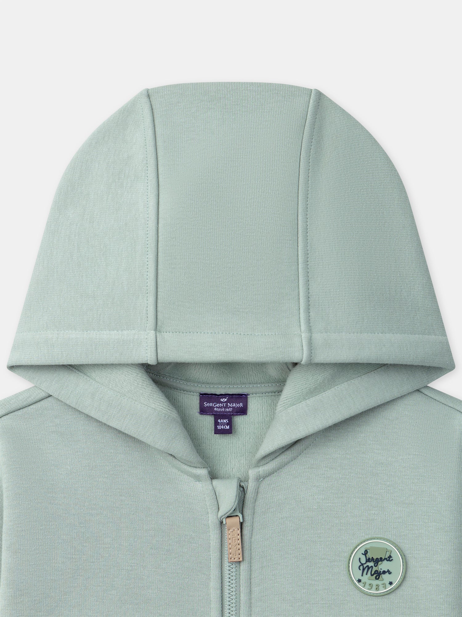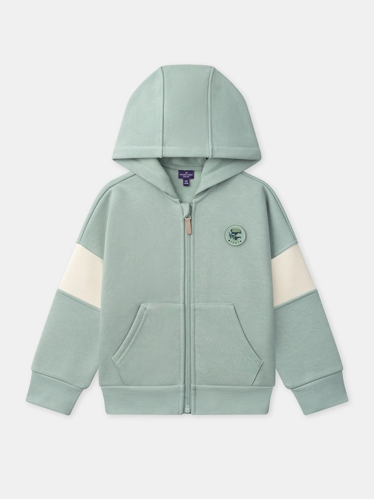 Pour un enfant en mouvement, parfait pour l’automne. Le molleton gratté et l’ouverture zippée facilitent le quotidien. Les coloris doux, le badge et les poches kangourou ajoutent une touche sportive.