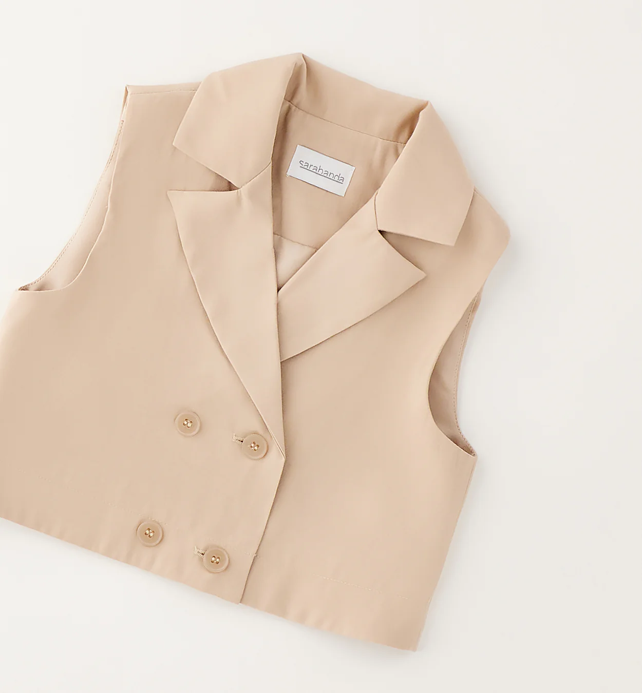 Gilet corto beige bambina estivo – 0G244 Gilet corto beige per bambina, leggero e morbido, ideale per outfit estivi eleganti. Perfetto per cerimonie, eventi speciali e tempo libero.