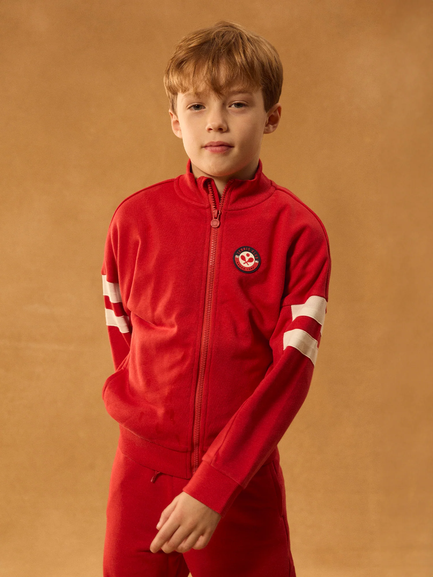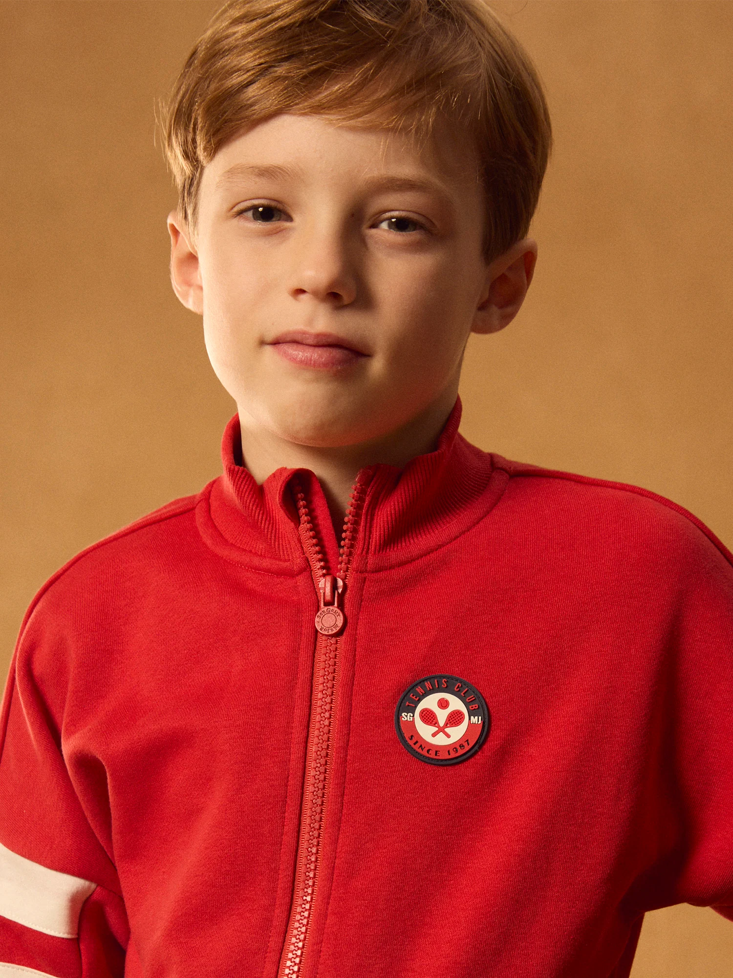 Progettato per bambini dinamici. Il morbido pile assicura comfort. Le bande a contrasto e la stampa in rilievo richiamano il mondo del tennis.