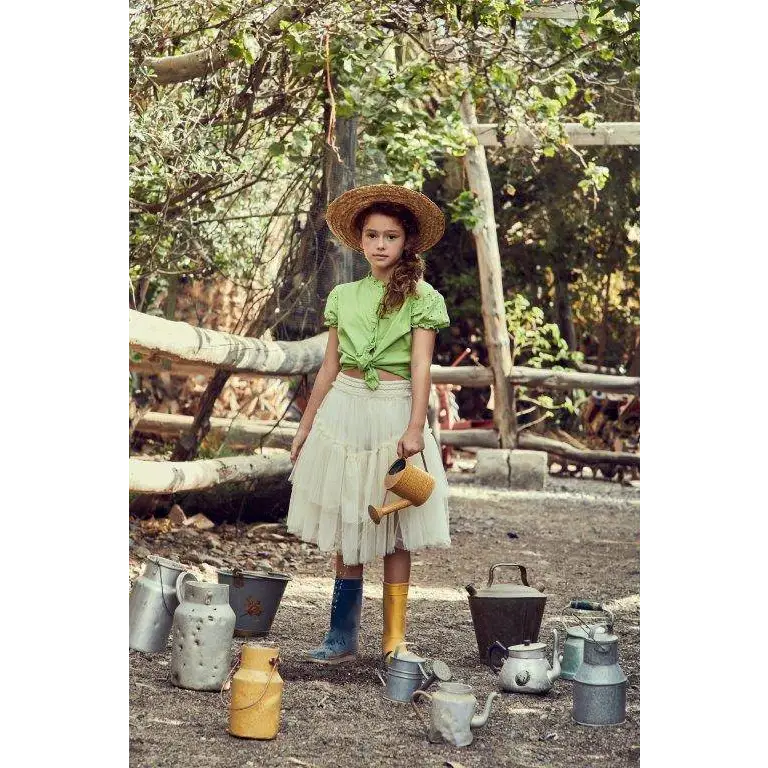 Il tessuto morbido garantisce una sensazione piacevole sulla pelle. Ogni dettaglio della gonna tulle panna ragazza è studiato per offrire qualità e durata. La leggerezza del tulle consente libertà di movimento. Perfetta per feste, cerimonie o passeggiate in famiglia.