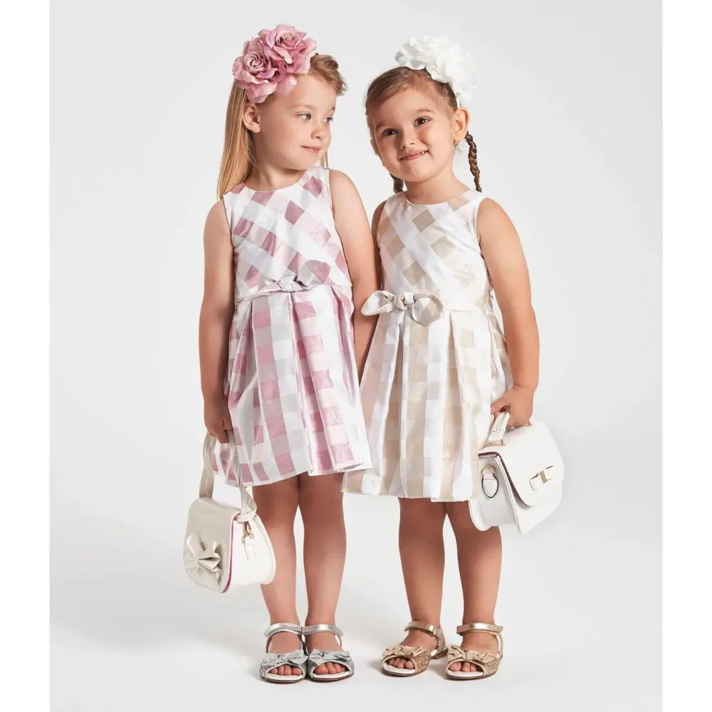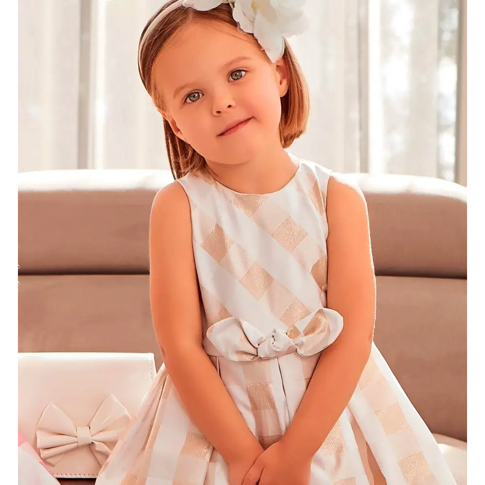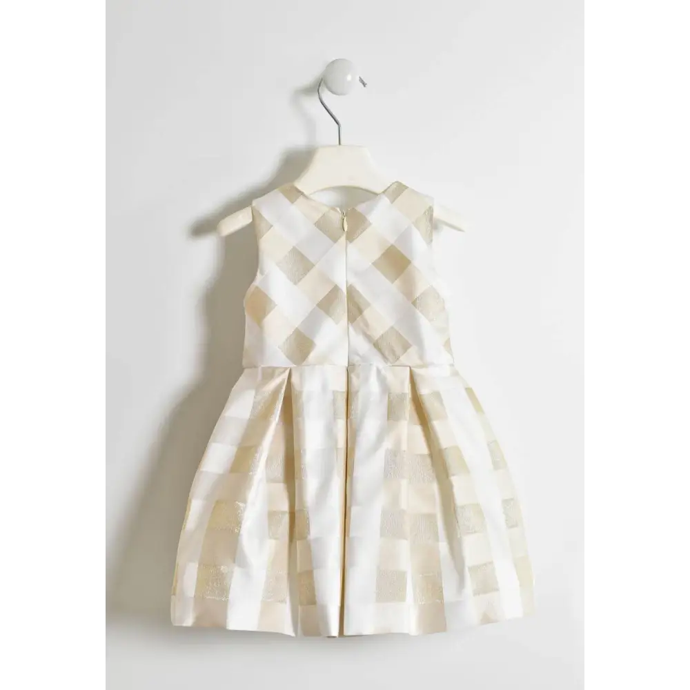 Grazioso Abito elegante in Taffetà con stampa a quadrettone panna/oro per Bimba 2anni Sarabanda 0W221