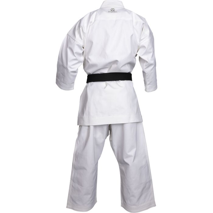 Hayashi has found the perfect balance between modernity and tradition with the “Tenno Elite” Kata Gi. This karate suit made of 100% cotton complies with the WKF regulations and is labeled as an official competition gi. Another plus point is the sport-specific trousers and jacket processing in incredibly stressed areas such as lapels, crotch areas, or the side cuts. Packed in a practical match bag, the “Tenno Elite” fits well protected in your sports bag and shines in bright white with you on the mat. Additional advantages: 100% cotton high quality modern cut machine washable