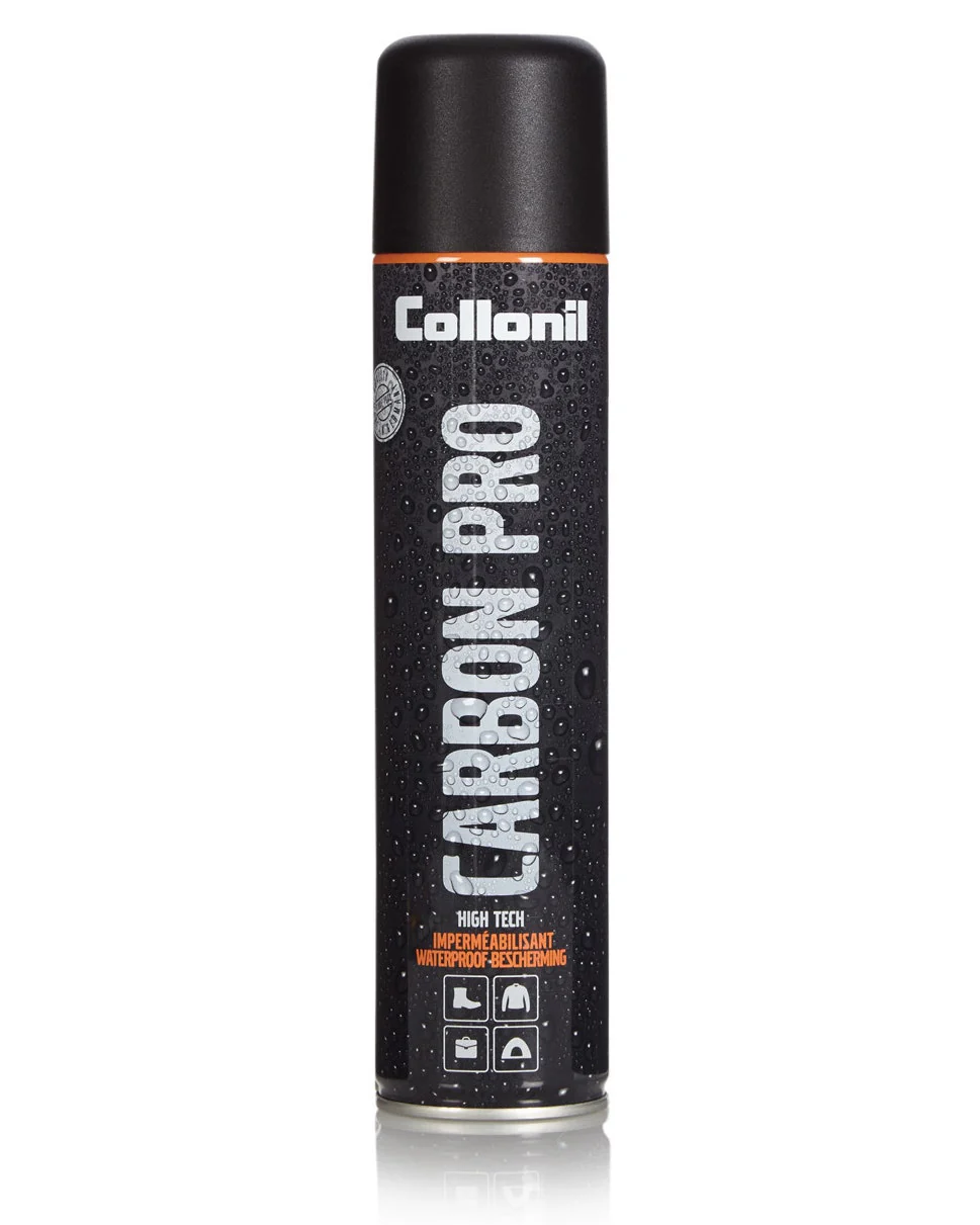 Impermeabilizzante universale Collonil Carbon Pro, protegge scarpe borse e abbigliamento da macchie di acqua e impermeabilizza l’oggetto.