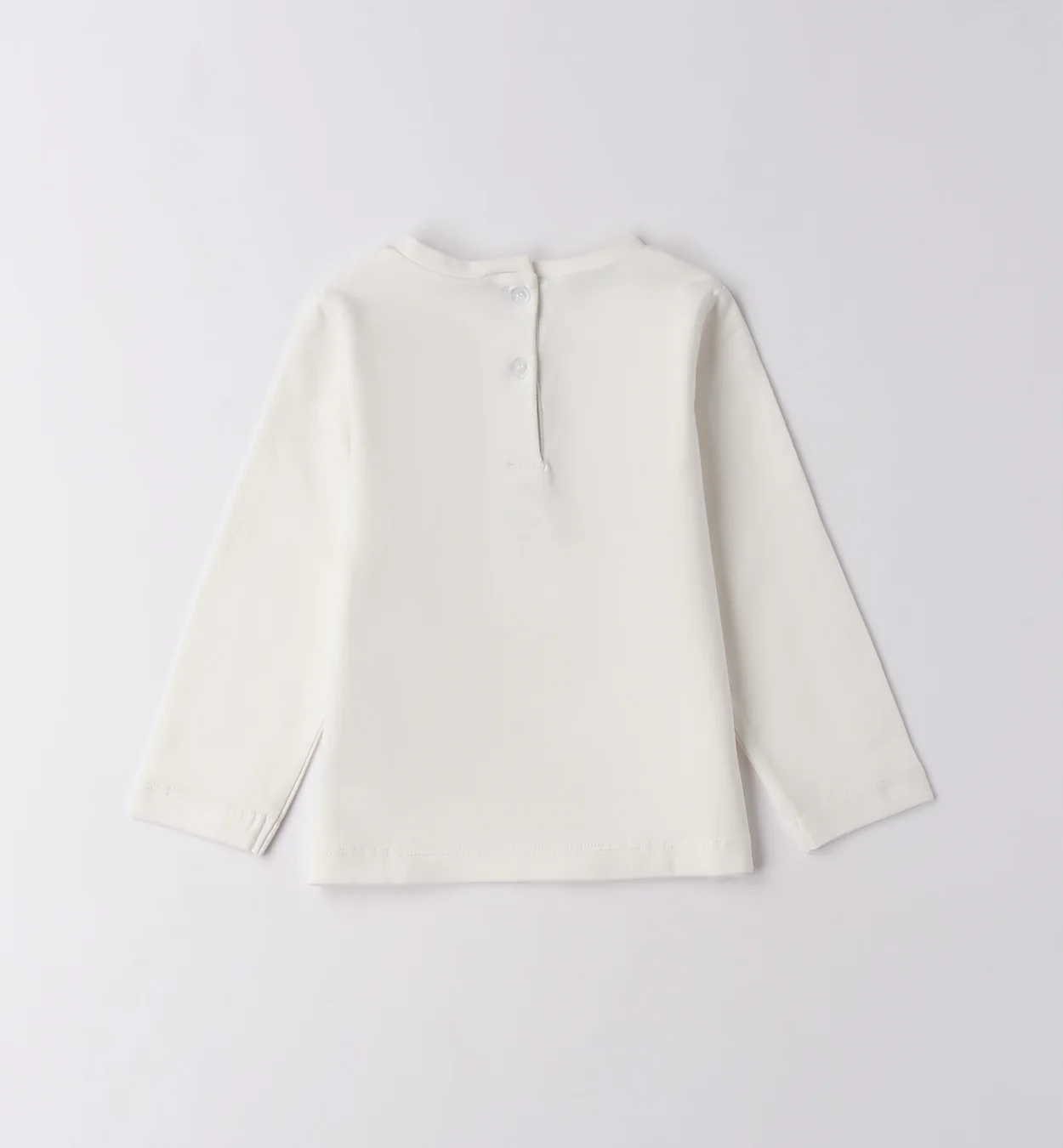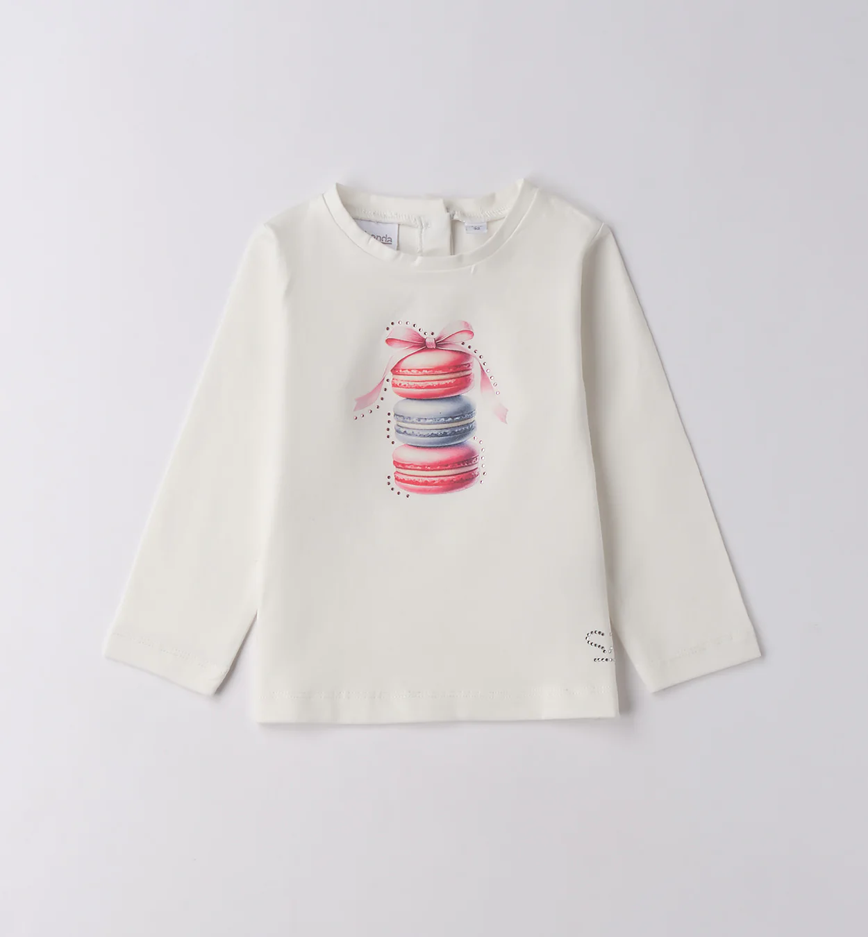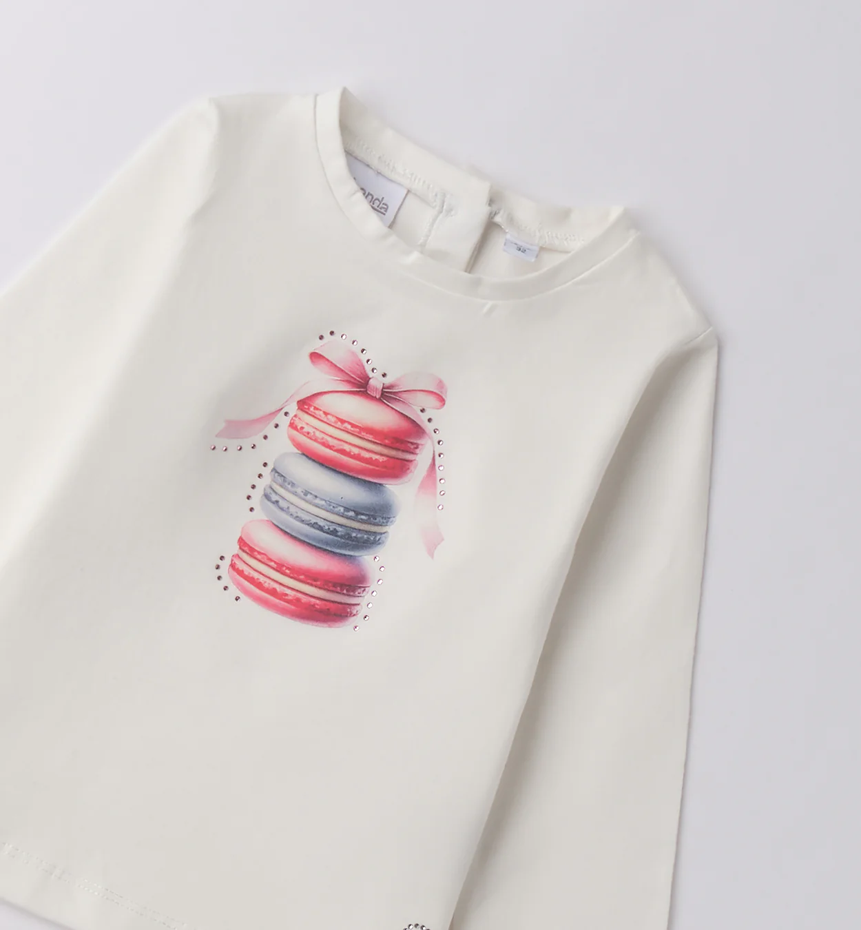 Maglietta bambina bianca maniche lunghe con disegno macarons e fiocco