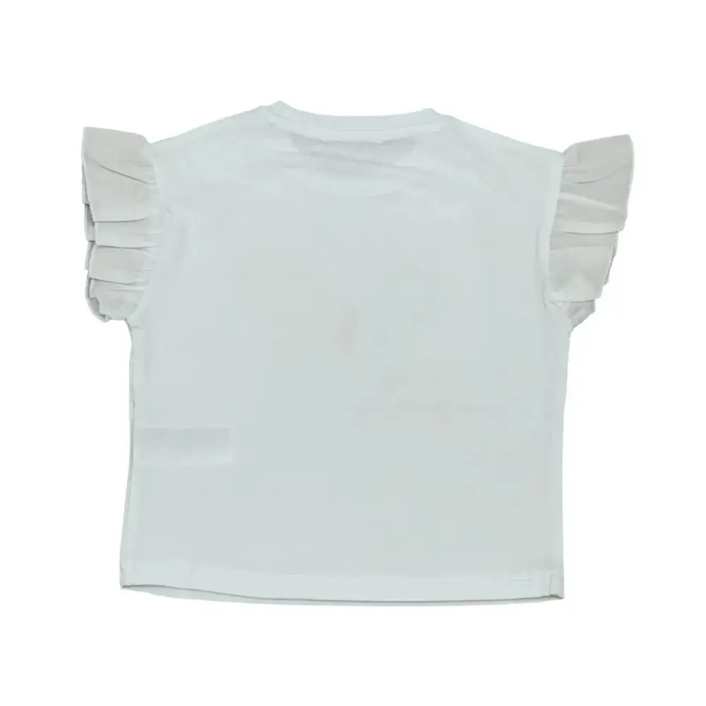 La MAGLIETTA CON STAMPA BAMBINA assicura comfort e praticità grazie alla qualità del cotone utilizzato. Le maniche arricciate donano un tocco giocoso, molto amato dalle bambine. Il taglio morbido permette libertà di movimento.
