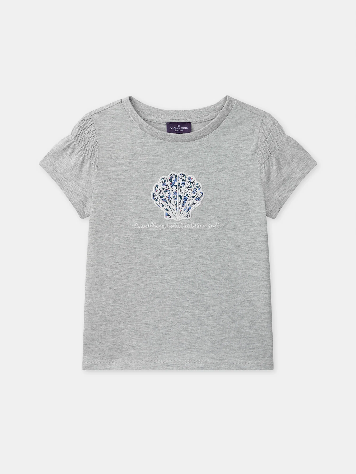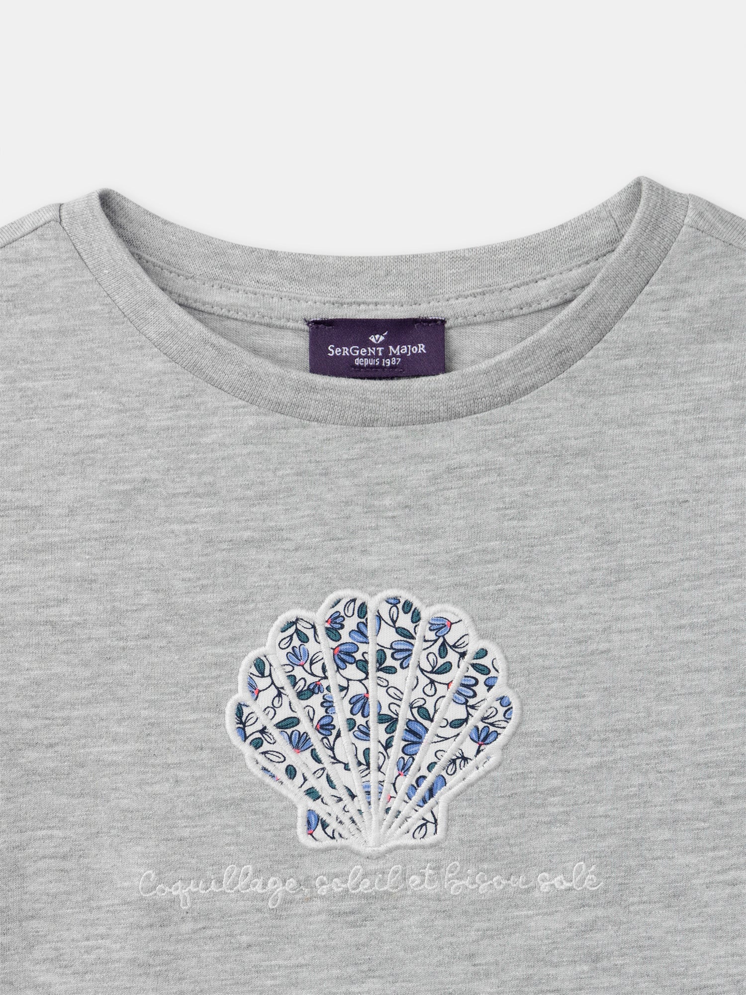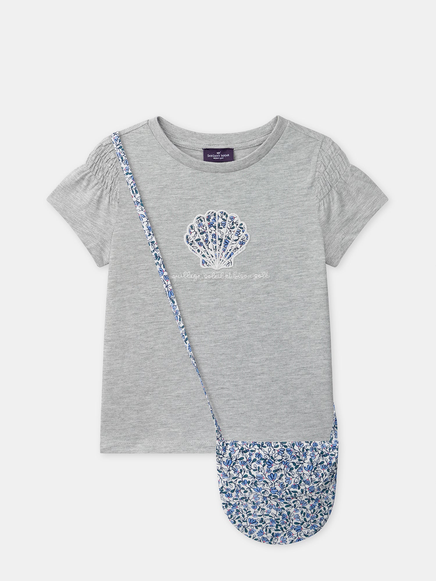 Progettato per bambini curiosi in primavera e estate. Realizzato in jersey grigio mรฉlange, garantisce comfort e libertร di movimento. Il patch a forma di conchiglia e la borsa inclusa immergono il bambino in un mondo estivo.