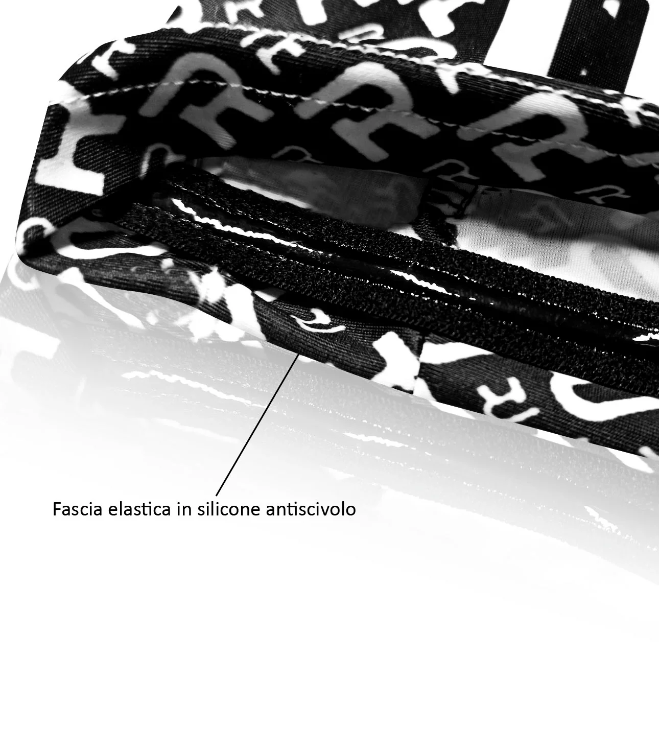 Elastico antiscivolo in silicone: Un dettaglio importante è la presenza di un elastico con striscia di silicone antiscivolo all’estremità. Questo aiuta a mantenere i manicotti saldamente in posizione durante il movimento, evitando che scivolino verso il basso durante il gioco.