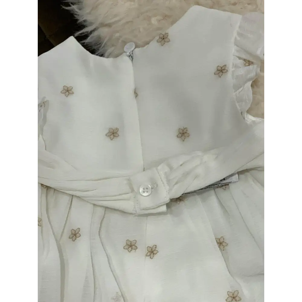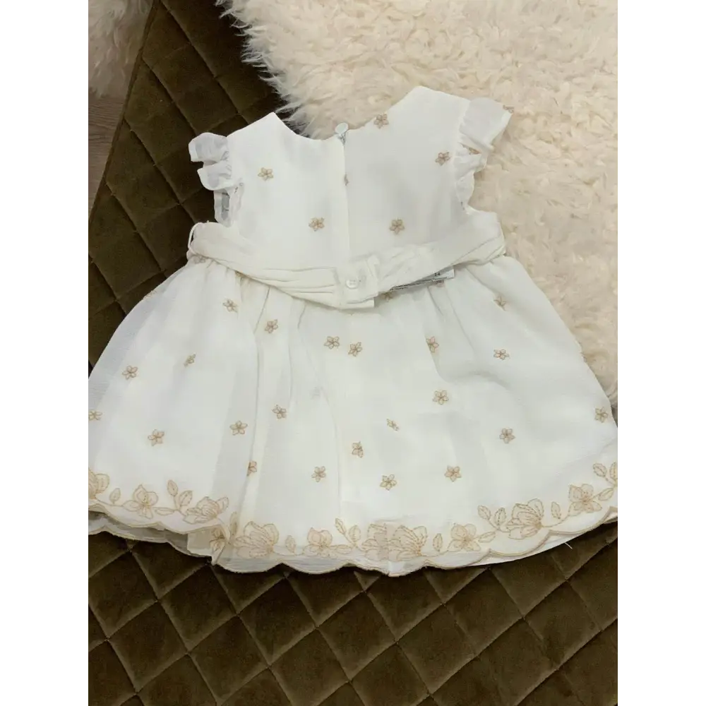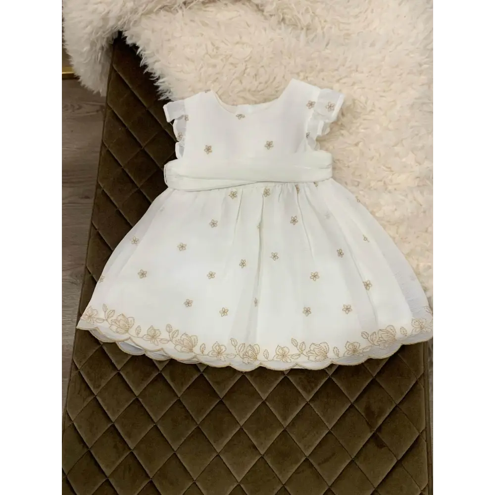 Questo abito cerimonia con culotte di Mayoral รจ perfetto per ogni occasione speciale. Il tessuto leggero e traspirante offre comfort durante tutta la giornata. Il design elegante rende questo abito adatto a battesimi, matrimoni o feste importanti. I dettagli ricamati con fili dorati aggiungono un tocco raffinato al look.