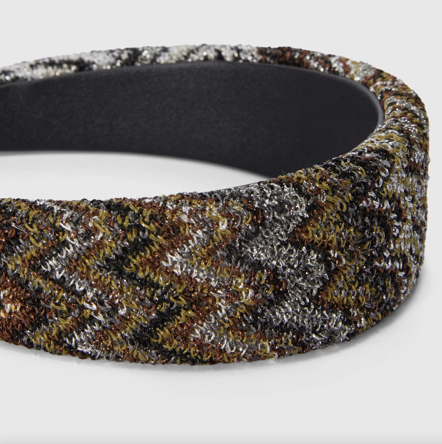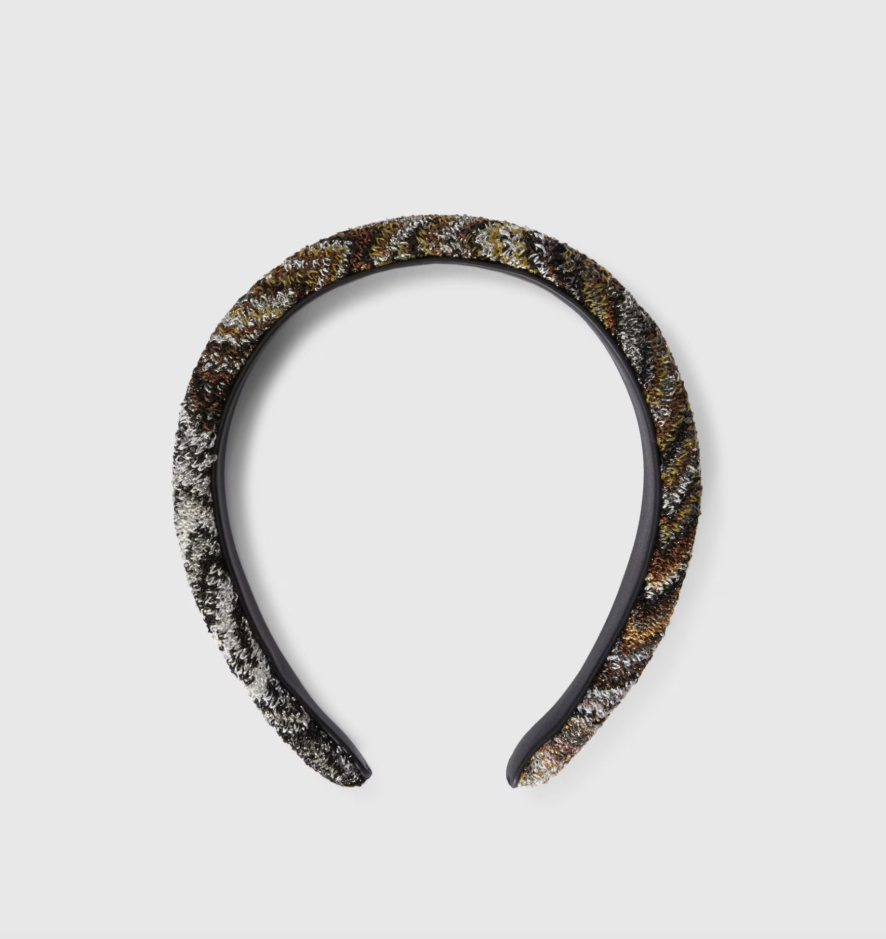Illuminato dal filato lamé, che ne percorre il motivo zig zag, ecco il cerchietto per capelli. Un accessorio femminile e pop, per completare con un twist inconfondibile ogni look.
