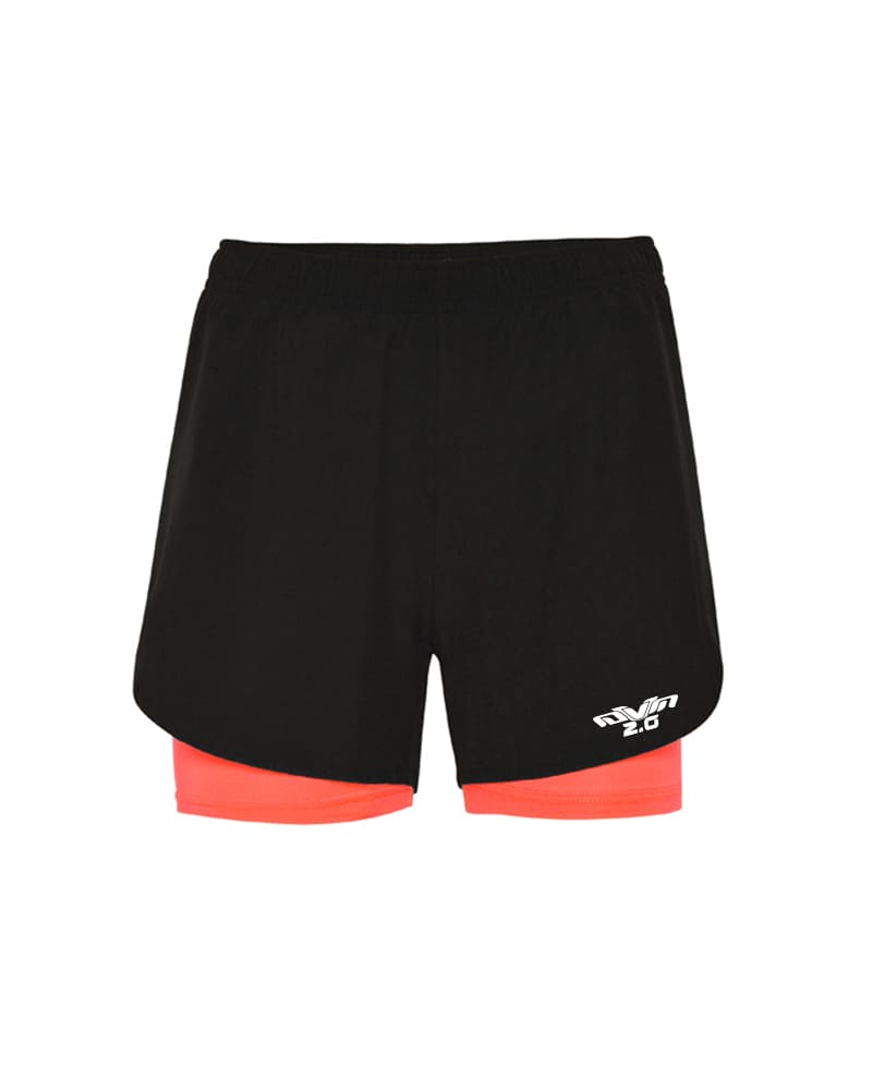 Panatalone corto sportivo donna DVM – con calzamaglia interna in contrasto. Cintura elastica con cordoncini interni
