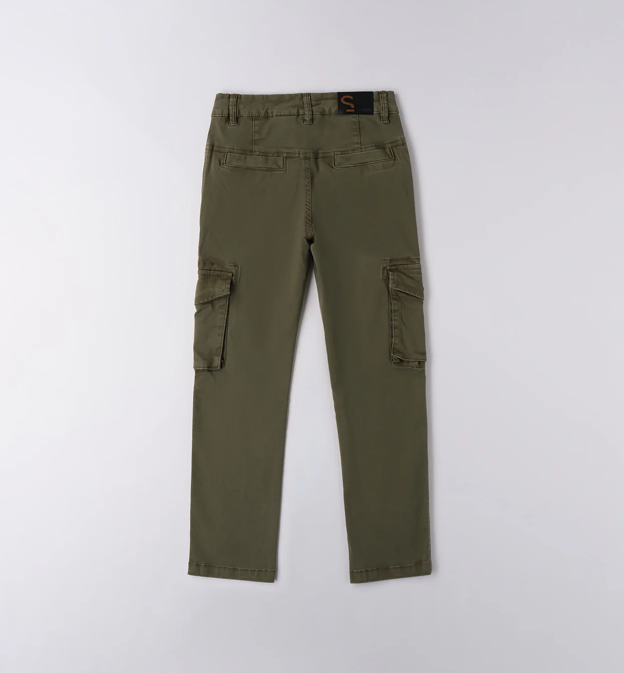 Pantalone per ragazzo Sarabanda 8-16 anni realizzato in tessuto twill manopesca in cotone stretch. Il modello ha l’apertura con bottone e zip, tasconi laterali. Loose fit. Modello cargo arricchito da scalfitture. Vita regolabile con elastico asolato interno
