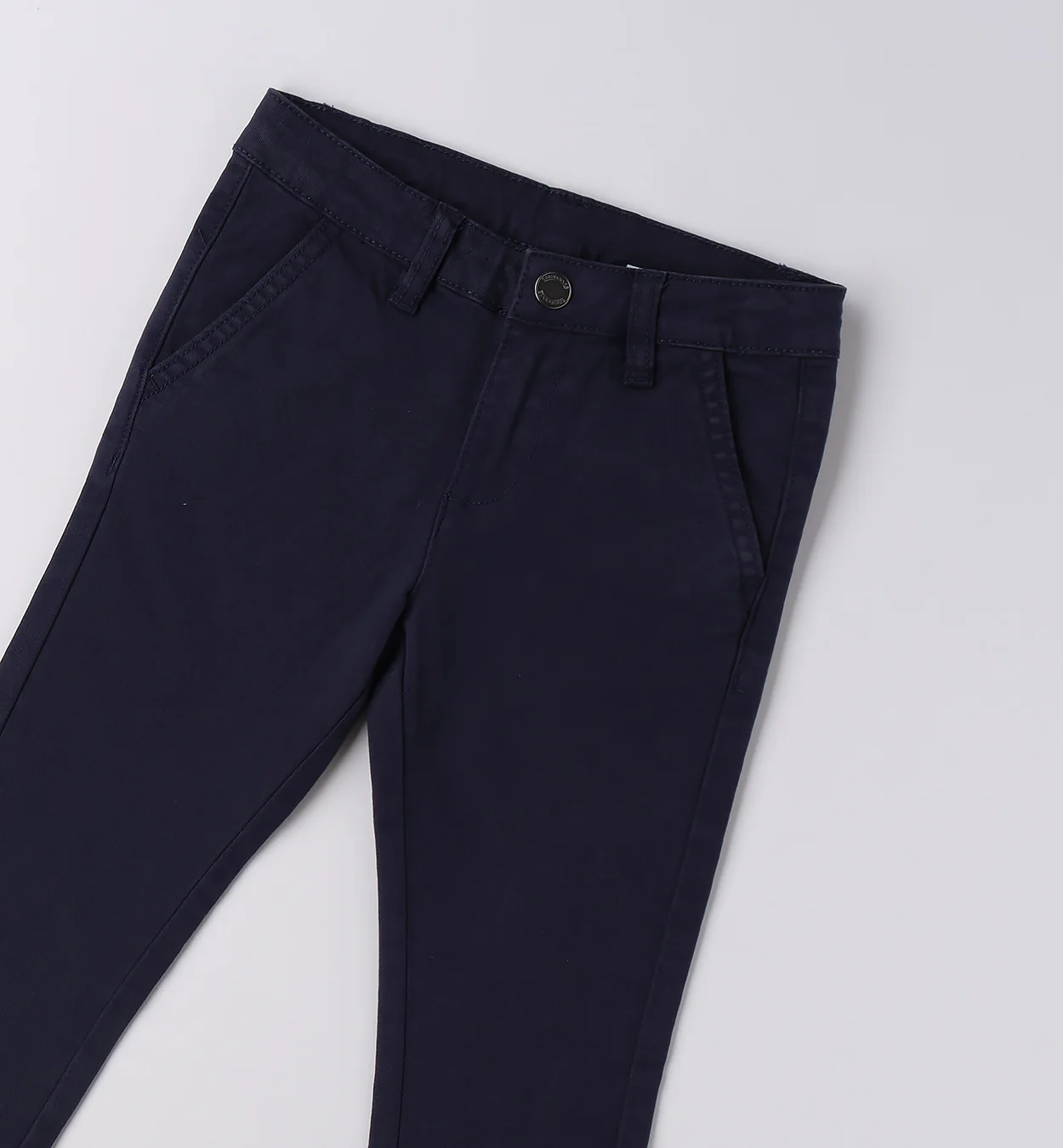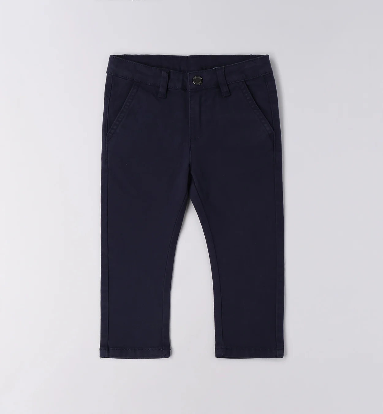Un capo essenziale e sempre alla moda! Questi Pantaloni da bambino blu scuro sono realizzati in tessuto resistente e confortevole, perfetti per accompagnare ogni avventura quotidiana. Il modello è dotato di quattro pratiche tasche e di una vita regolabile con elastico interno, che assicura una vestibilità perfetta e segue la crescita del bambino.