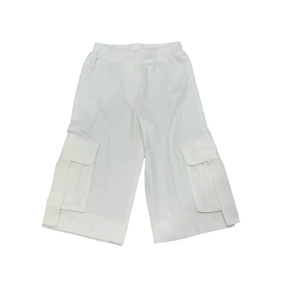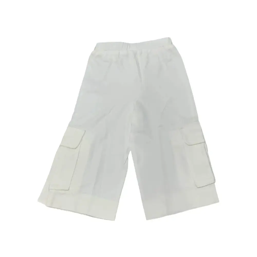 Pantaloni larghi crop per bambina, colore panna, leggeri e comodi per un look estivo elegante e trendy.