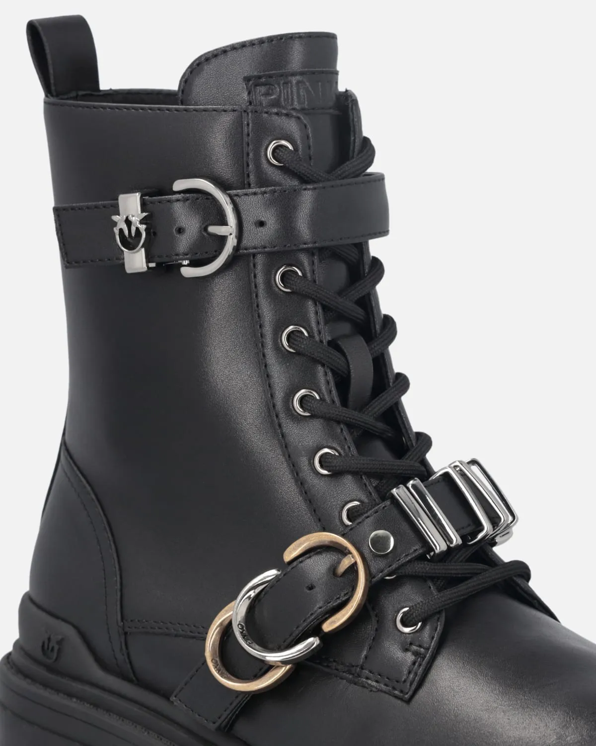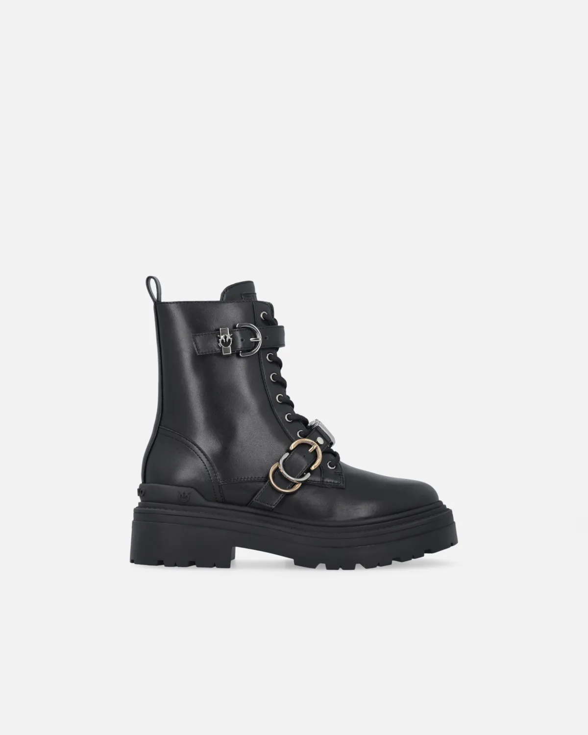 Anfibi stringati in pelle con gambale alto 16 cm e suola carrarmato in gomma alta 5,5 cm. Questo modello si distingue per il suo design essenziale ma deciso, arricchito da dettagli metallici che ne accentuano la personalità. La zip laterale ne facilita la calzata, mentre i cinturini regolabili con fibbia, di cui uno dotato di passante metallico con logo Love Birds, aggiungono un tocco rock e sofisticato. Sappiamo bene che sono i dettagli a fare la differenza: scegli questo modello per aggiungere un tocco di irriverenza ai tuoi look casual.