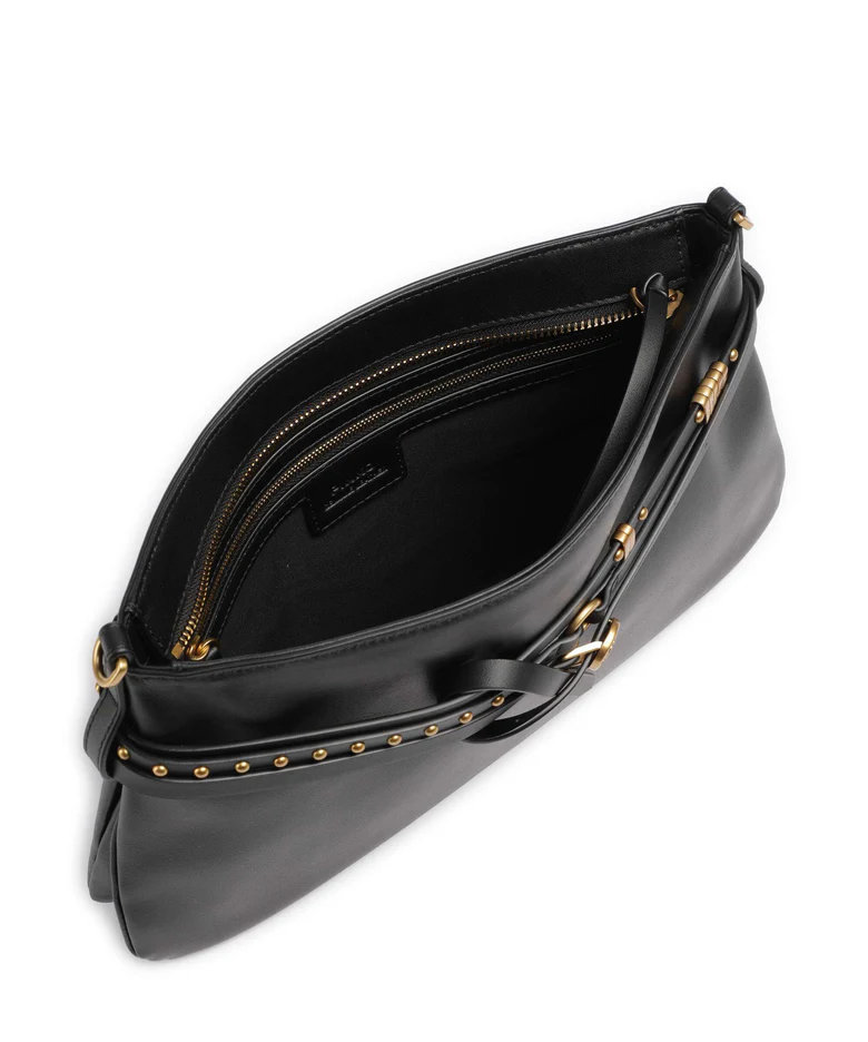 Borsa Belt Bag di medie dimensioni con design piatto e forma leggermente a trapezio, realizzata in morbida pelle scamosciata. Il modello è decorato da una sottile cintura coordinata regolabile che avvolge la parte superiore con più giri, arricchita da borchie arrotondate, una piccola fibbia circolare con gli iconici uccellini Love Birds e anelli decorativi in metallo che formano il logo lettering PINKO. Grazie alla tracolla in pelle scamosciata regolabile e rimovibile e al manico superiore regolabile nello stesso materiale, l’accessorio può essere indossato a spalla oppure crossbody, risultando estremamente versatile e pratico. La chiusura con zip rivela un interno foderato in drill di cotone dotato di una comoda tasca a parete con targhetta logata. Attiva la tua borsa PINKO: verifica l’autenticità del tuo prodotto e accedi all’esperienza personalizzata avvicinando il tuo smartphone al ricamo Love Birds che trovi sul retro della borsa!