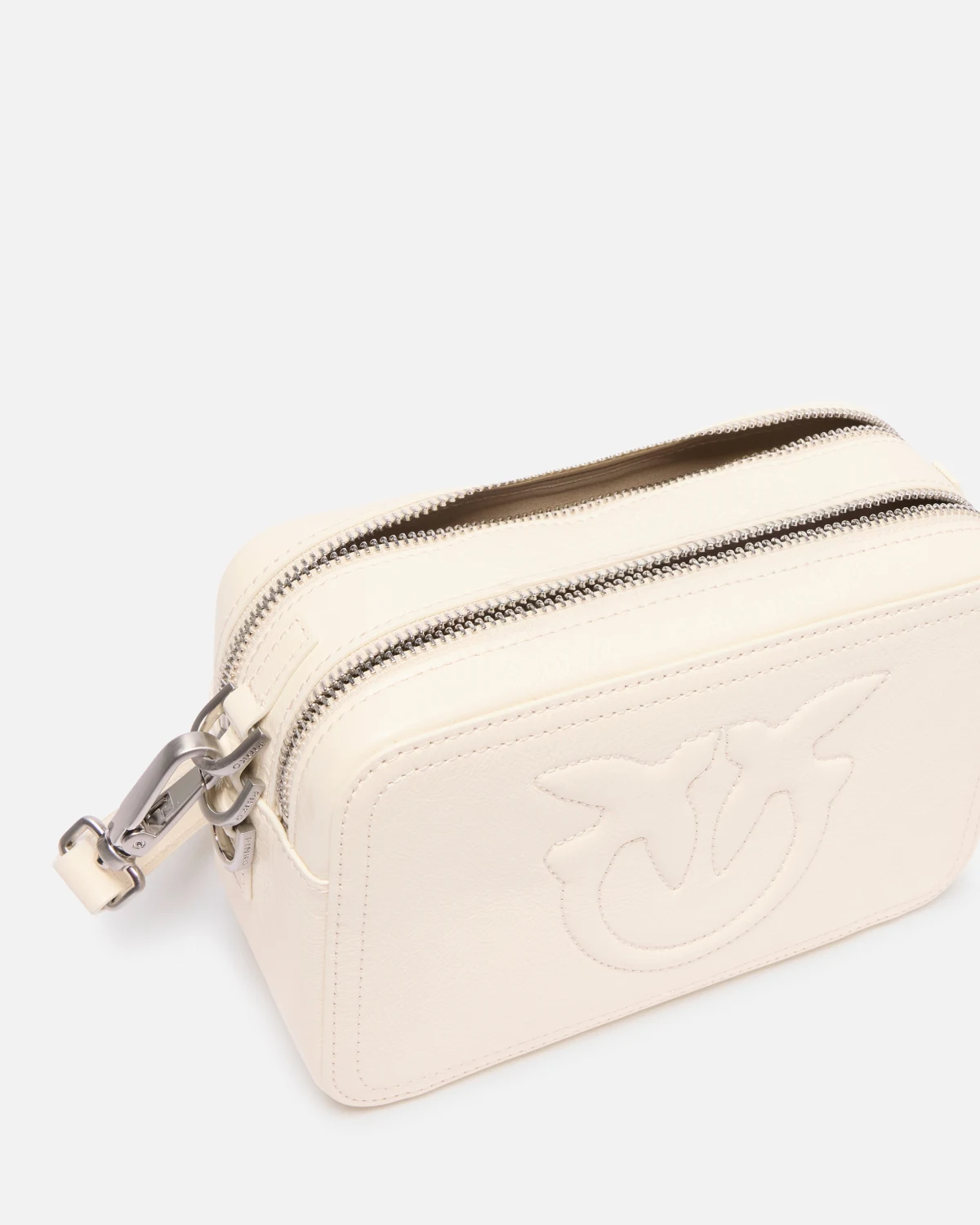 Borsa stile camera bag, dalla forma morbida e rettangolare, realizzata in pelle glossy, dalla particolare texture lucida con personalizzazione maxi logo uccellini Love Birds in rilievo. La borsetta è completa di tracolla in pelle, regolabile e rimovibile con piccoli moschettoni metallici, mentre l’interno è organizzato in due scomparti, foderati in drill di cotone e chiusi con zip, tirazip in pelle. Attiva la tua borsa PINKO: verifica l’autenticità del tuo prodotto e accedi all’esperienza personalizzata avvicinando il tuo smartphone al ricamo Love Birds che trovi sul retro della borsa!