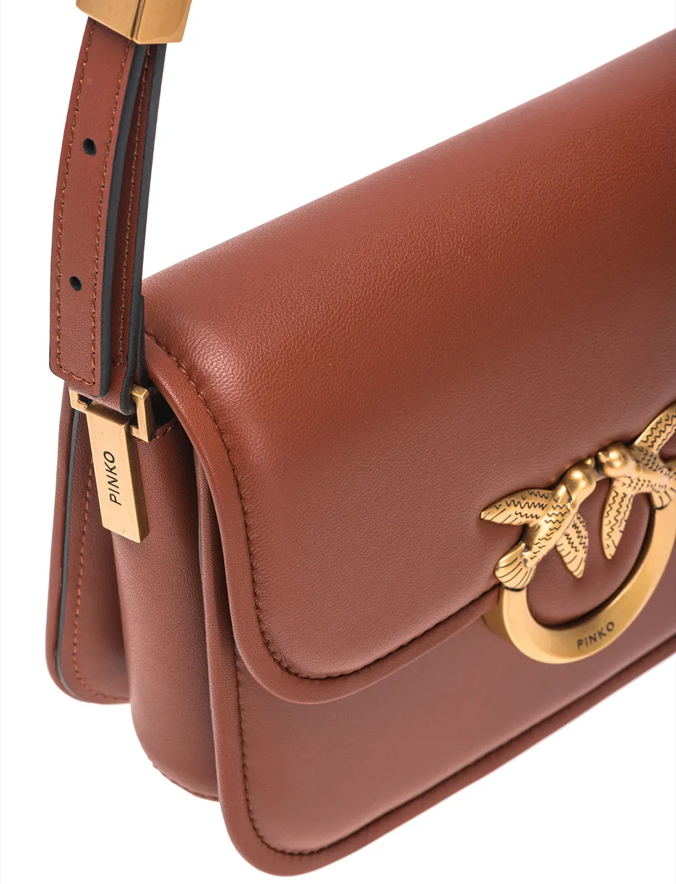 Borsa Pinko modello Love Box Mini realizzata in pelle marrone. Caratterizzata da una chiusura con magnete e dal classico logo Love Birds Diamond Cut placcato in oro sul fronte borsa. Presenta internamente uno scomparto ed una tasca a parete con zip.