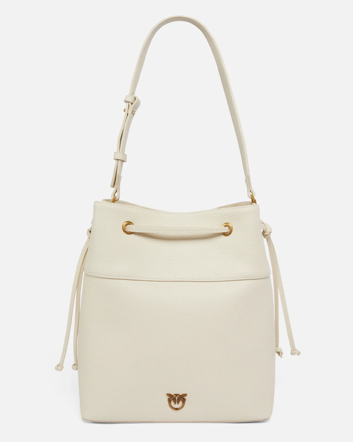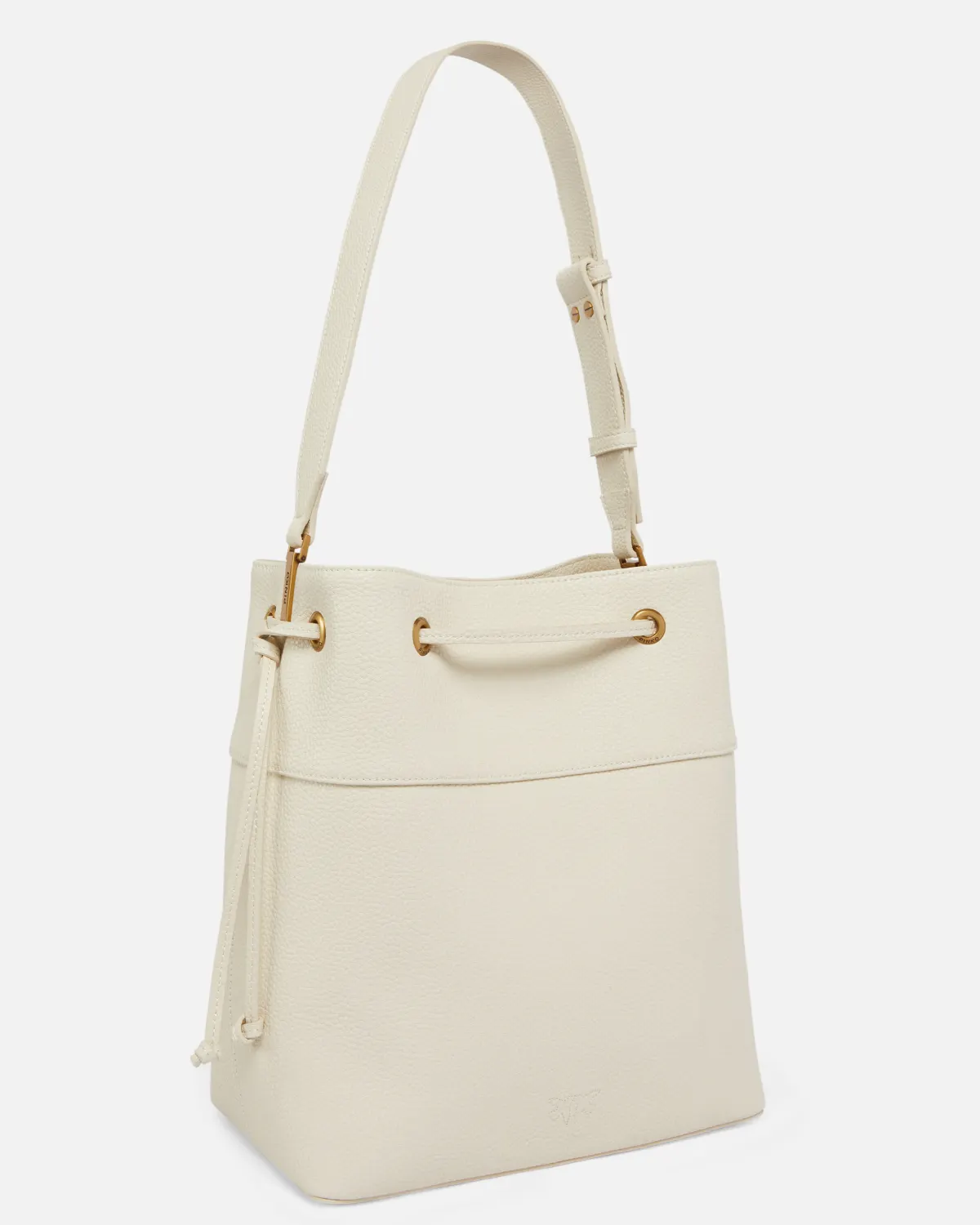 Borsa dalla forma a secchiello in pregiata pelle bottalata, facilmente identificabile grazie alla texture che la caratterizza. La borsa da giorno è completa di pratica tracolla fissa, regolabile grazie a una fibbia, realizzata nella stessa pelle della borsa. La coulisse in pelle regola la chiusura, mentre l’interno della borsa è foderato in tessuto drill di cotone e include una pratica tasca a parete in pelle. Il classico secchiello è personalizzato con placchetta logo uccellini Love Birds Diamond Cut in metallo davanti. La borsa a secchiello è una soluzione fashion e capiente da indossare con i tuoi look quotidiano, qualsiasi sia la tua destinazione, per avere tutto a portata di mano. Attiva la tua borsa PINKO: verifica l’autenticità del tuo prodotto e accedi all’esperienza personalizzata avvicinando il tuo smartphone al ricamo Love Birds che trovi sul retro della borsa!