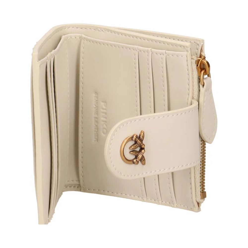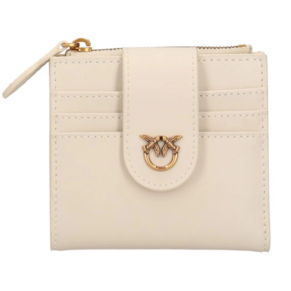 PINKO Portafoglio piccolo in pelle liscia con logo bianco avorio
