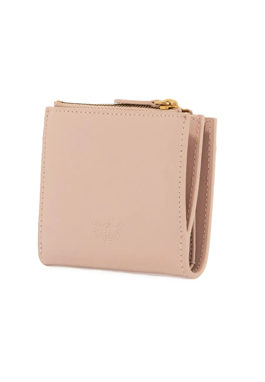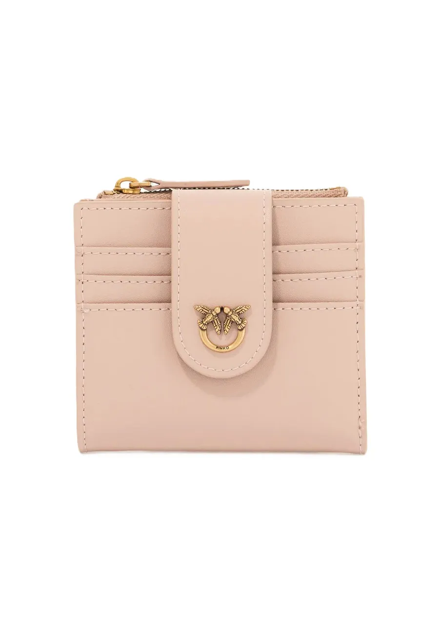 PINKO Portafoglio piccolo in pelle liscia con logo rosa cipria