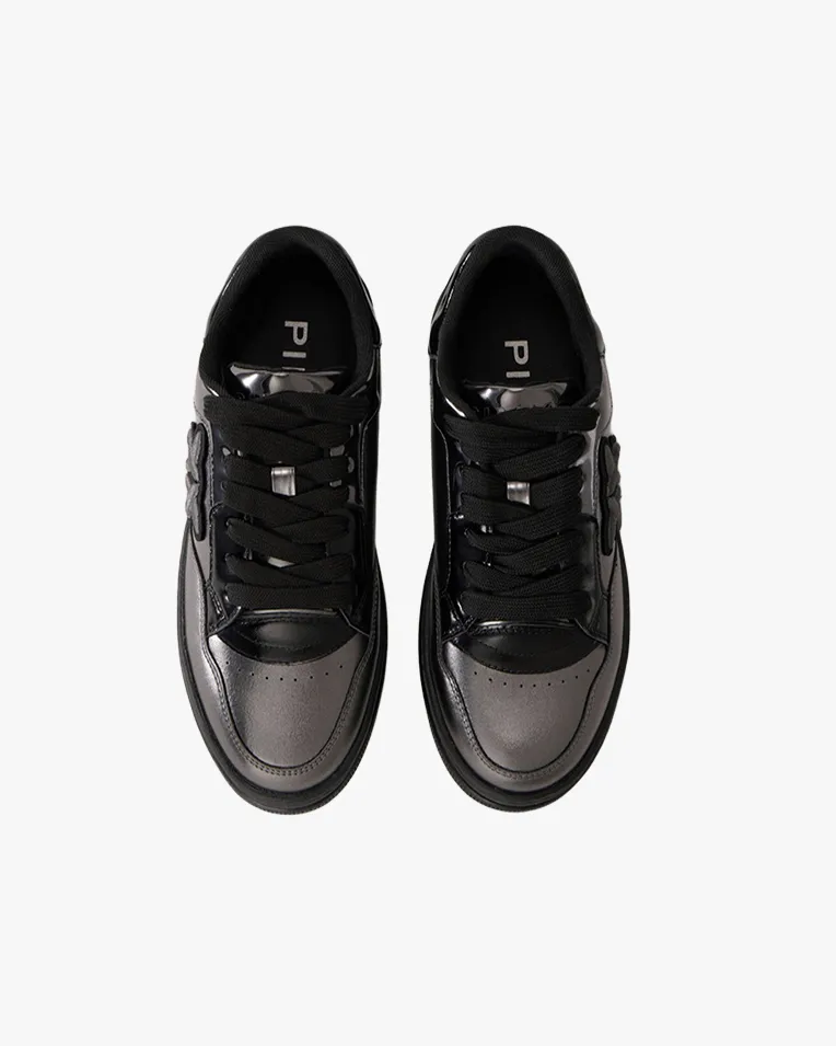 Sneakers classiche realizzate in pelle con suola platform alta 3,5 cm. L’elemento distintivo è rappresentato dal dettaglio laminato effetto specchio sul tallone che eleva la silhouette essenziale, mentre il tocco finale è dato dalla placca con logo Love Birds, portavoce dell’inimitabile stile del brand. Queste sneakers sono destinate a diventare un caposaldo dei tuoi look casual da giorno e non solo, sei d’accordo?
