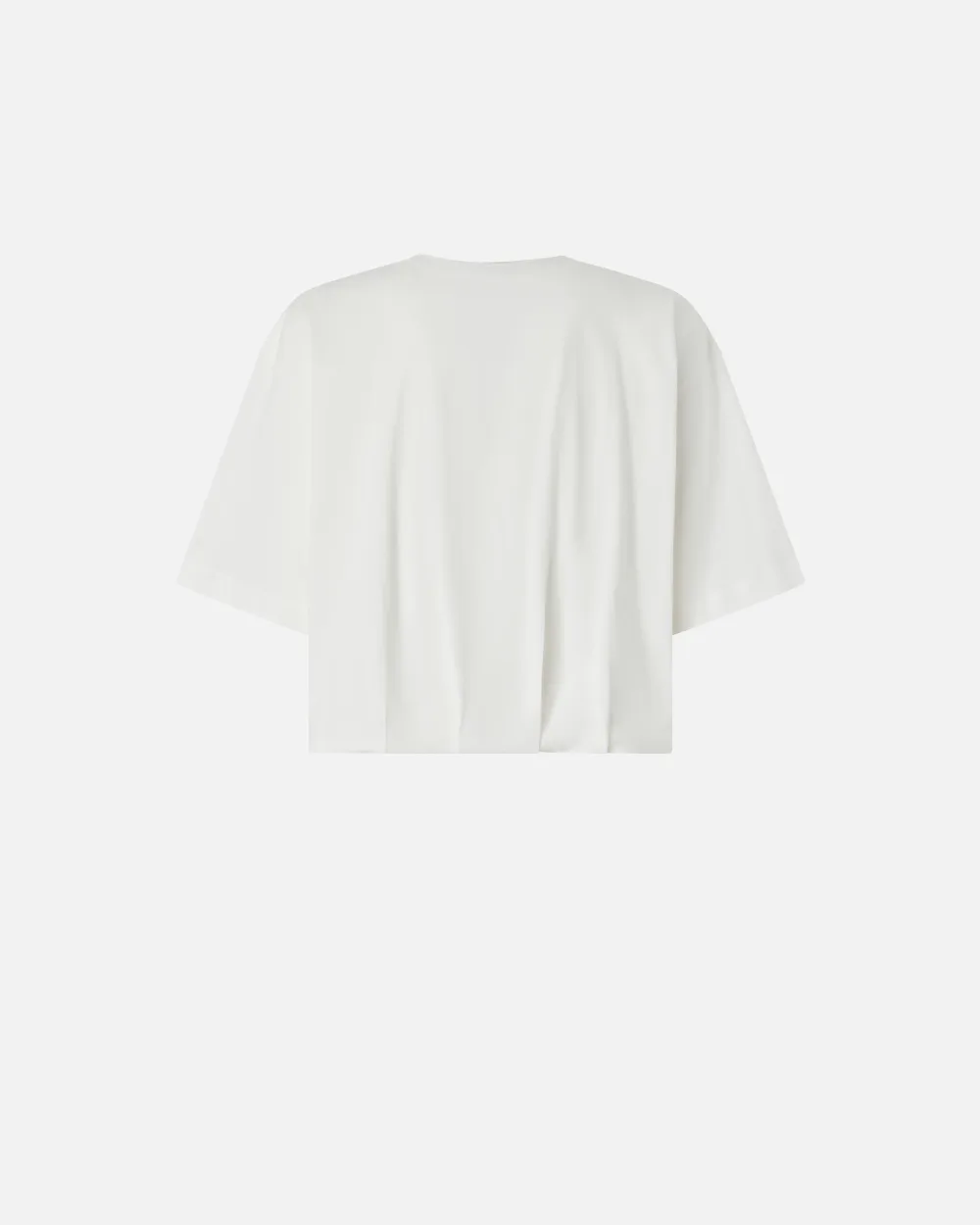 Maglia cropped a mezze maniche realizzata in morbido jersey di puro cotone, caratterizzata da volume ampio e personalizzata con mini ricamo logo PINKO davanti. Il volume della t-shirt e il suo taglio corto, all’ombelico, sono valorizzati da un leggero motivo di pieghe al fondo. Questa maglia sarà il capo più versatile che avrai nel tuo guardaroba di primavera, da indossare anche con i leggings sportivi per uno stile dinamico e cool.