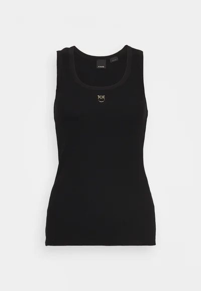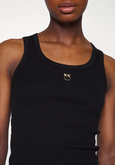 Pinko – Top Calcolatore canotta a costine in cotone bianco con piccolo logo oro sul davanti, scollo a U, spalline larghe, smanicato, vestibilità regolare.